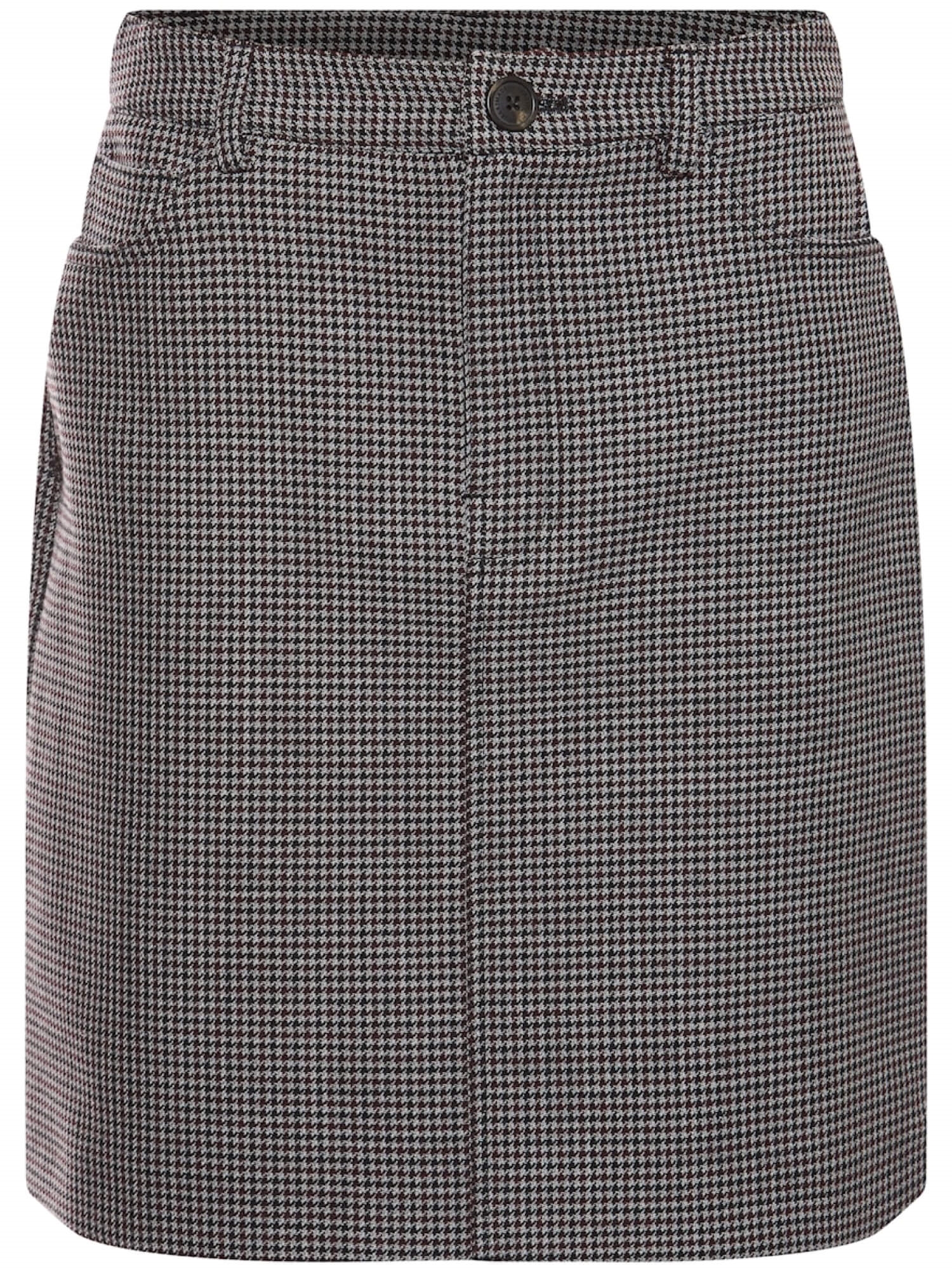 SICA fra Heartmade er en skøn knælang nederdel i unik italiensk kvalitet i flot kombi af bordeaux og sorte hanefjedstern på grå baggrund. Sica nederdelen er designet med lynlås foran og fin detalje med påsyede lommer bagpå!