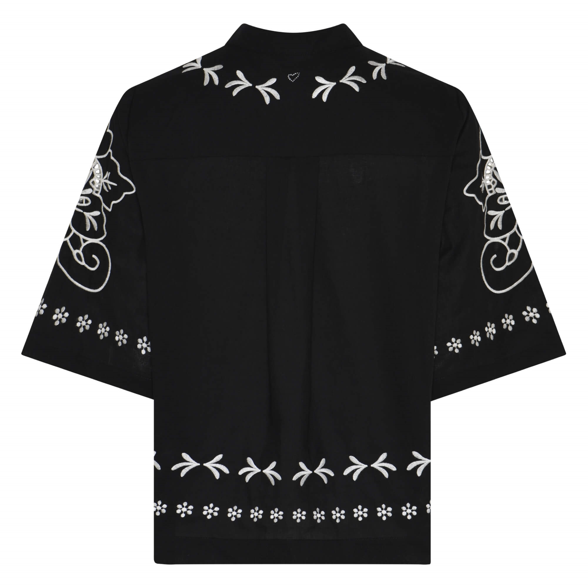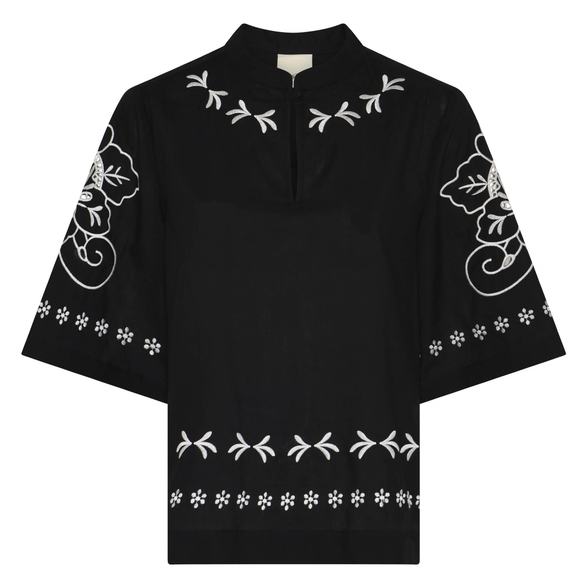 Style blusen med enkle bukser for at lade broderierne træde tydeligt frem, eller bær den som et koordineret sæt med den matchende kjole for et harmonisk og helstøbt silhuetudtryk. En elegant og alsidig bluse, der løfter både hverdags- og occasion-garderoben.