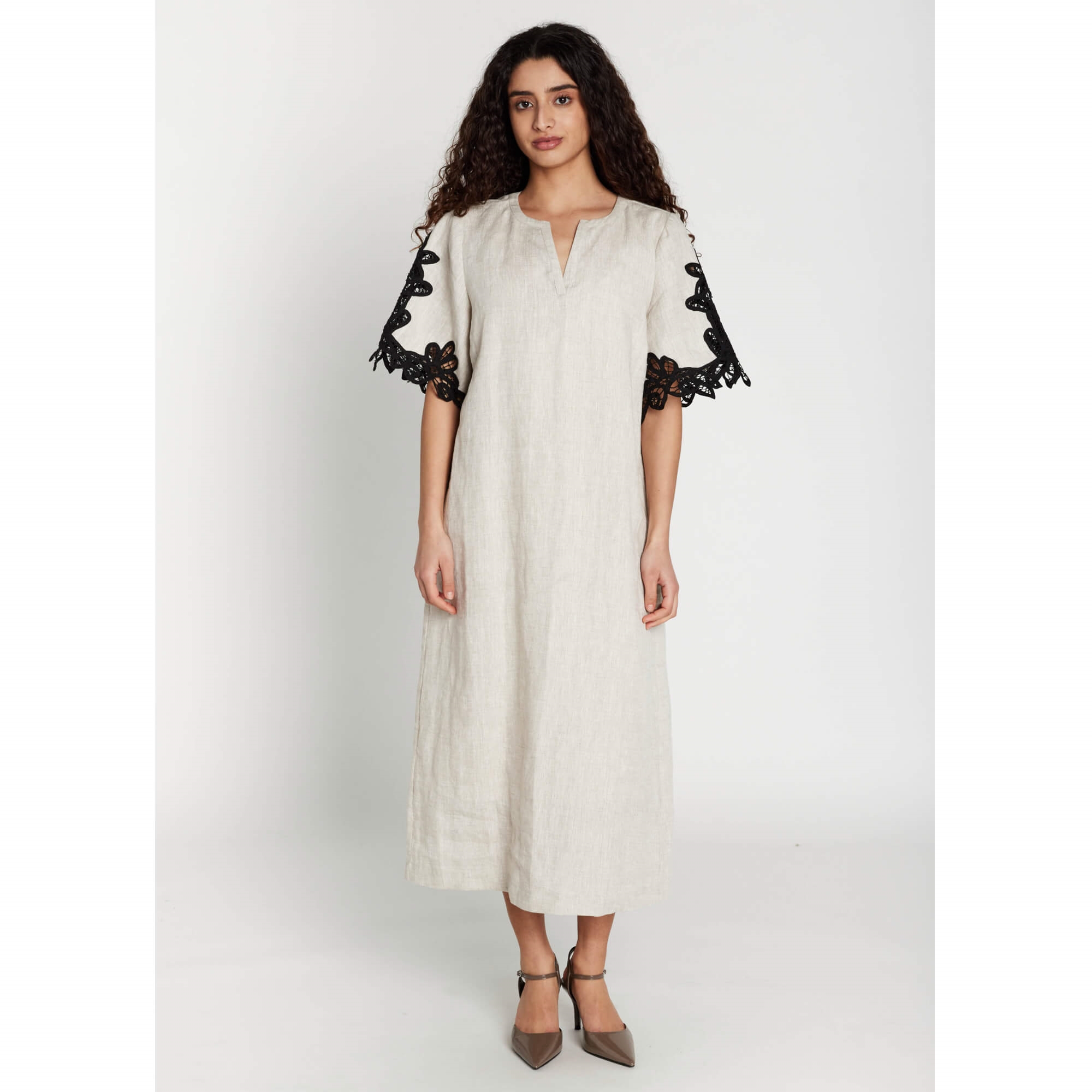 Den smukke Velan kjole fra Heartmade er nem at tage på og føles let og behagelig hele dagen. Kjolen har en løs, lige pasform og går til anklerne, hvilket giver et roligt og afslappet look.