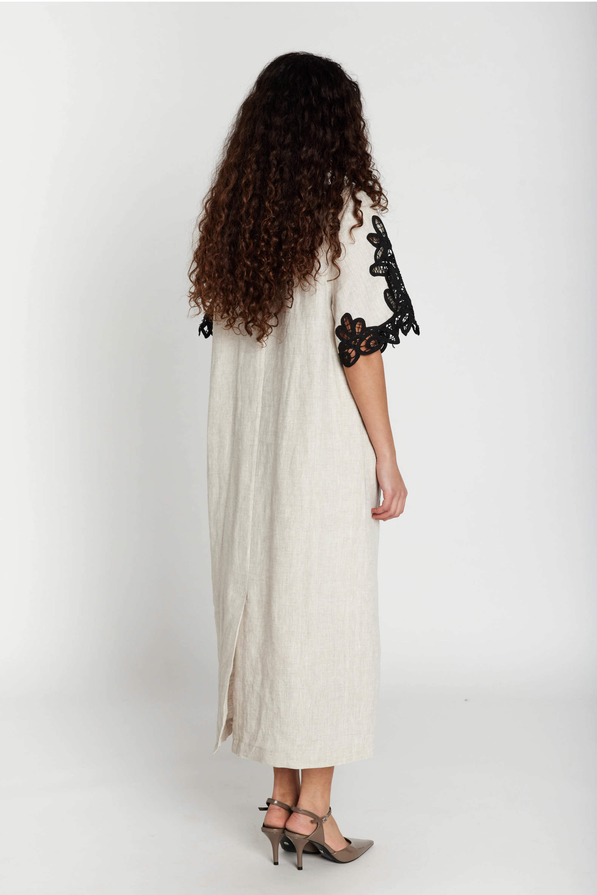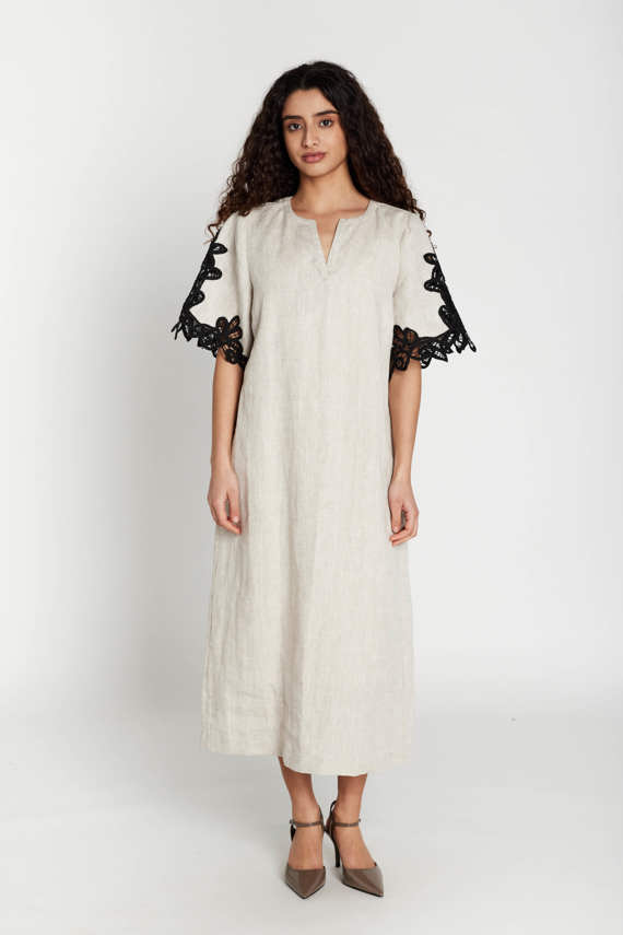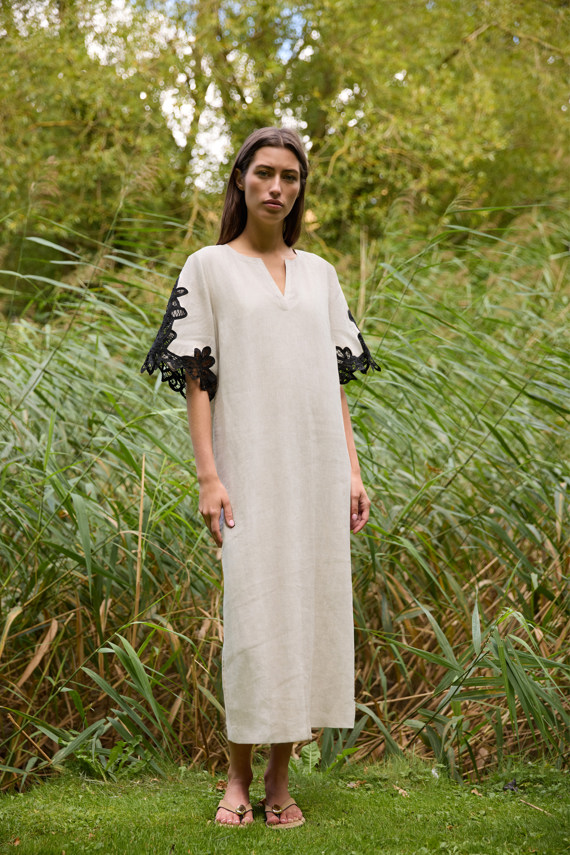 Den smukke Velan kjole fra Heartmade er nem at tage på og føles let og behagelig hele dagen. Kjolen har en løs, lige pasform og går til anklerne, hvilket giver et roligt og afslappet look.