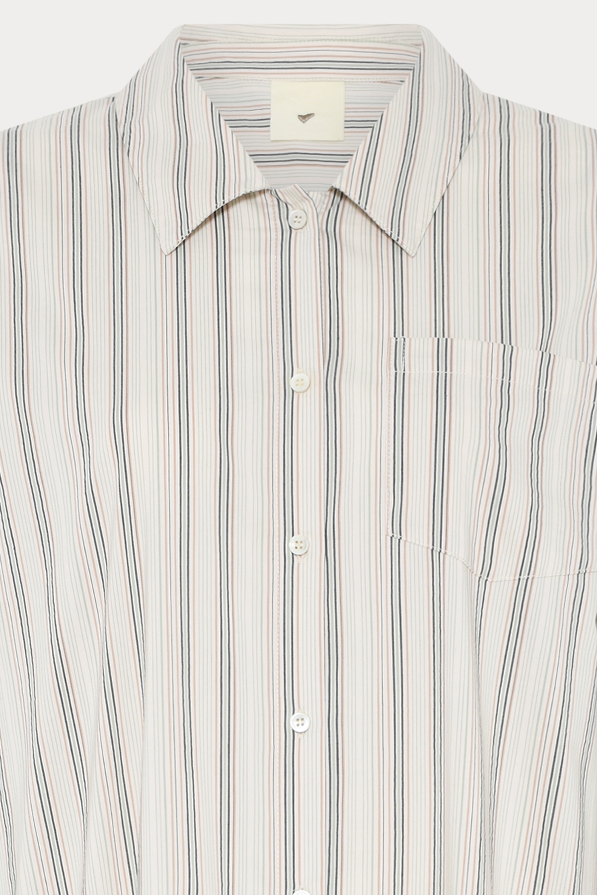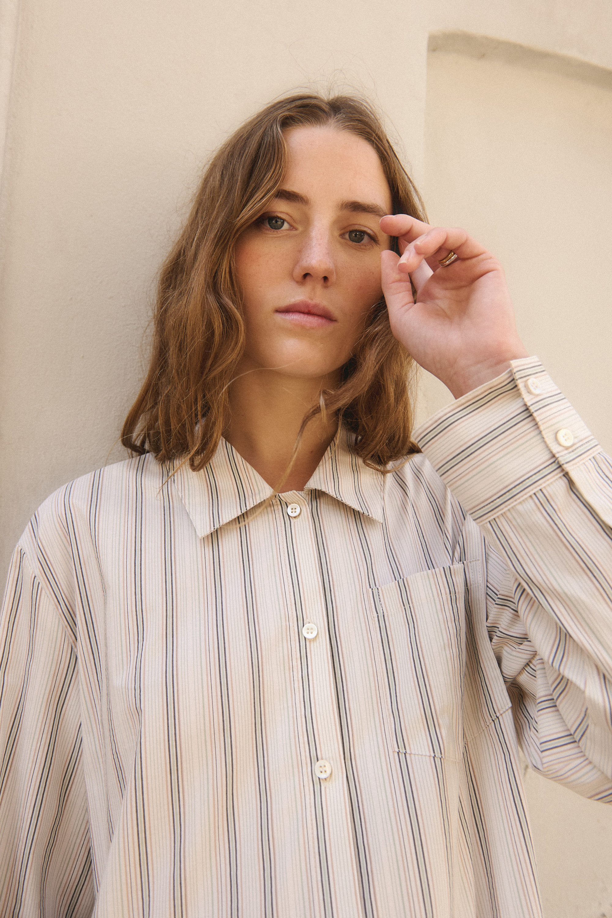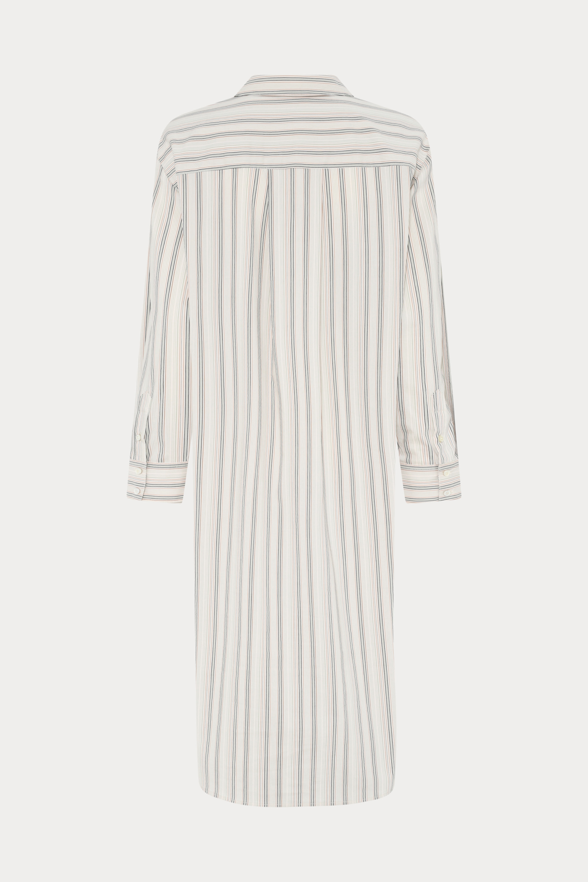 Vipea kjolen er en elegant skjortekjole med oversize pasform og fine detaljer som lange slidser i siderne og buet sømkant, der sikrer et moderne og luftigt udtryk.