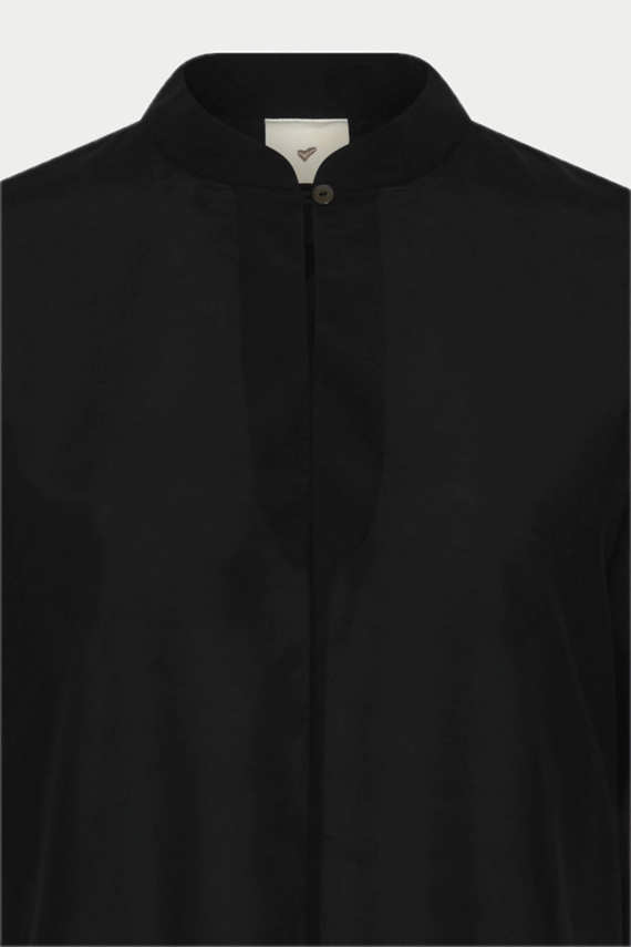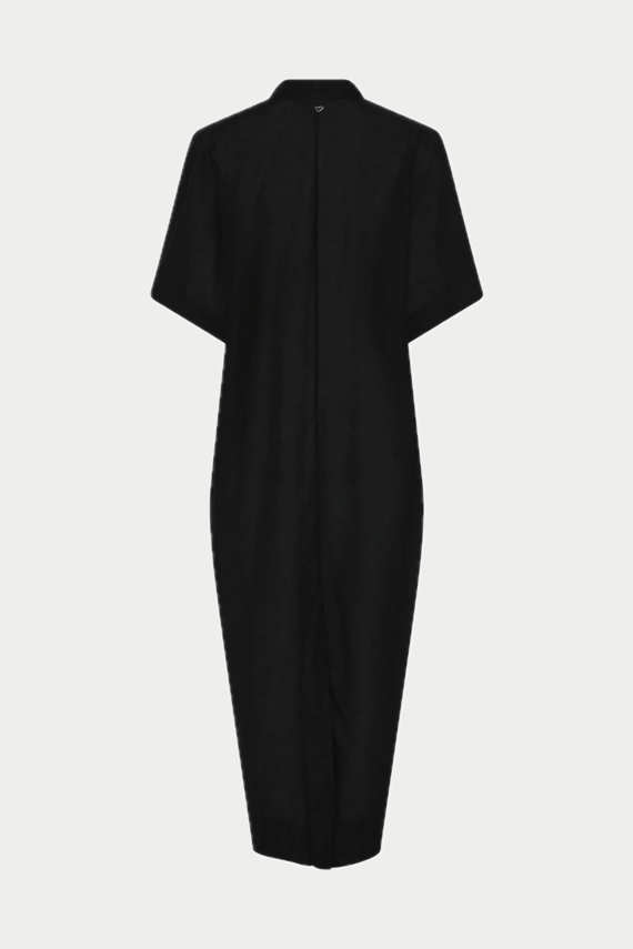 Visea kjolen udstråler med sin minimalistisk elegance med sit enkle, men sofistikerede snit. Kjolen har en løs, lige silhuet, der falder flatterende over kroppen, og de brede, korte ærmer giver et afslappet og moderne udtryk. Den høje, smalle krave og den diskrete lukning foran understreger det rene design. Længden går til midt på læggen, hvilket giver kjolen en tidløs og alsidig karakter – perfekt til både hverdagsbrug og mere formelle anledninger, alt afhængigt af styling.