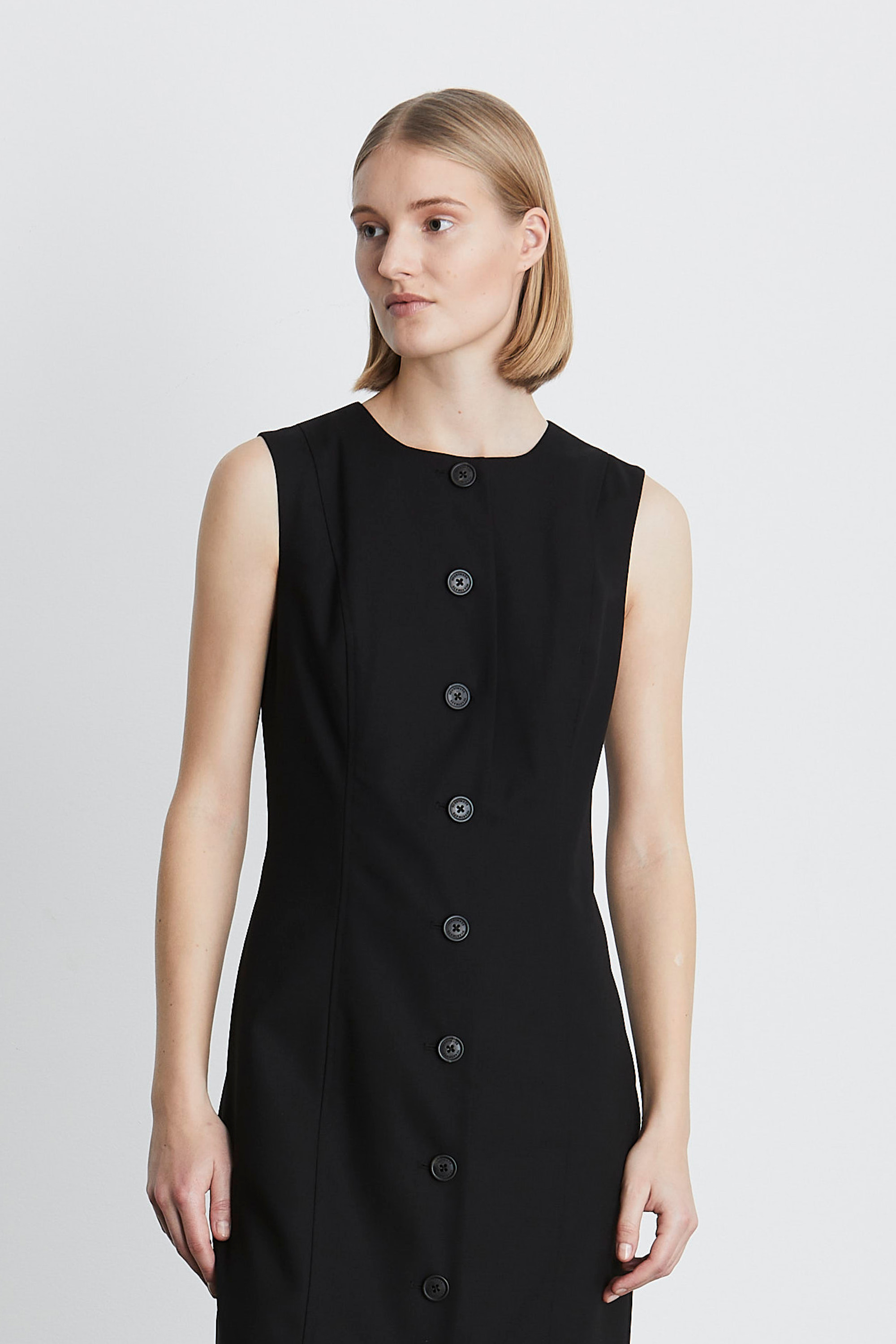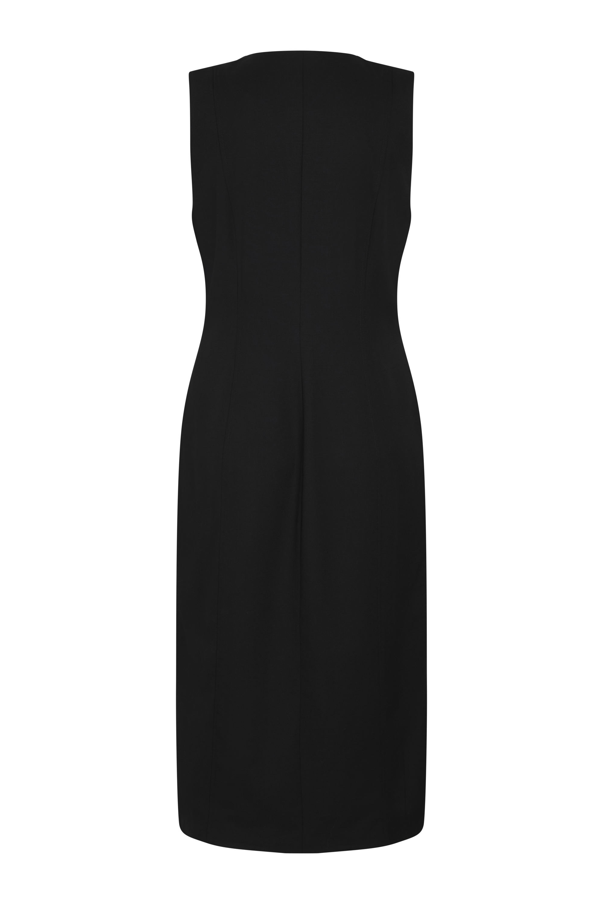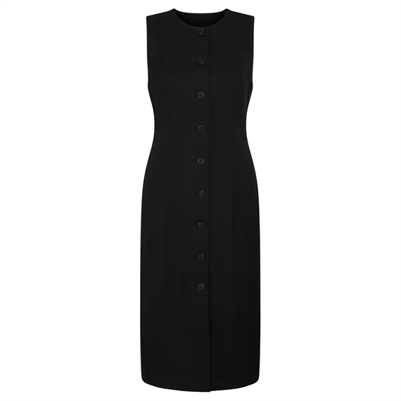 Vista kjolen er en elegant lang spencer kjole med snitlinjer på kroppen, der tilføjer form og stil. Knaplukningen foran og den fulde foring sikrer både komfort og et poleret look. Sidelommerne gør den både praktisk og chic.