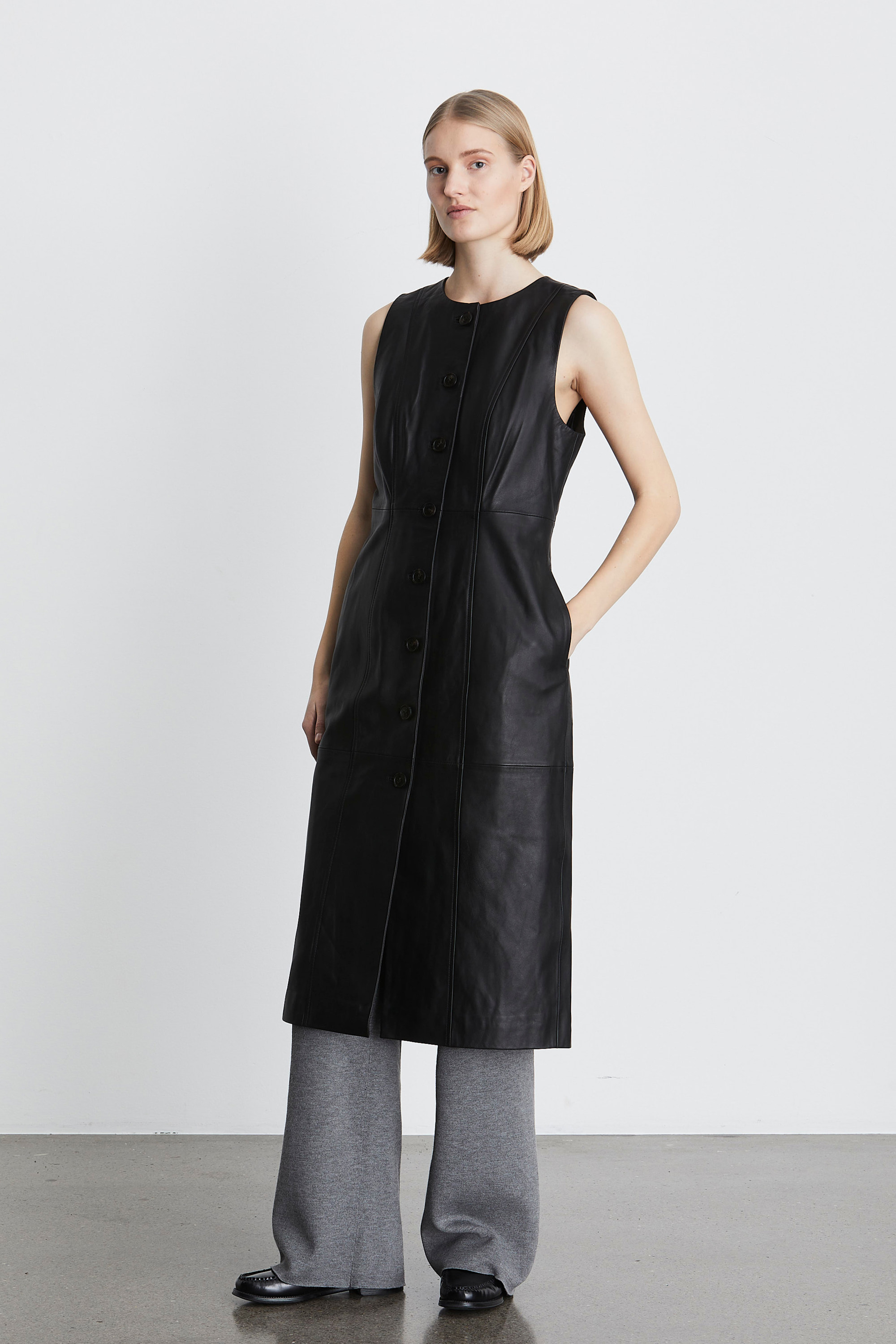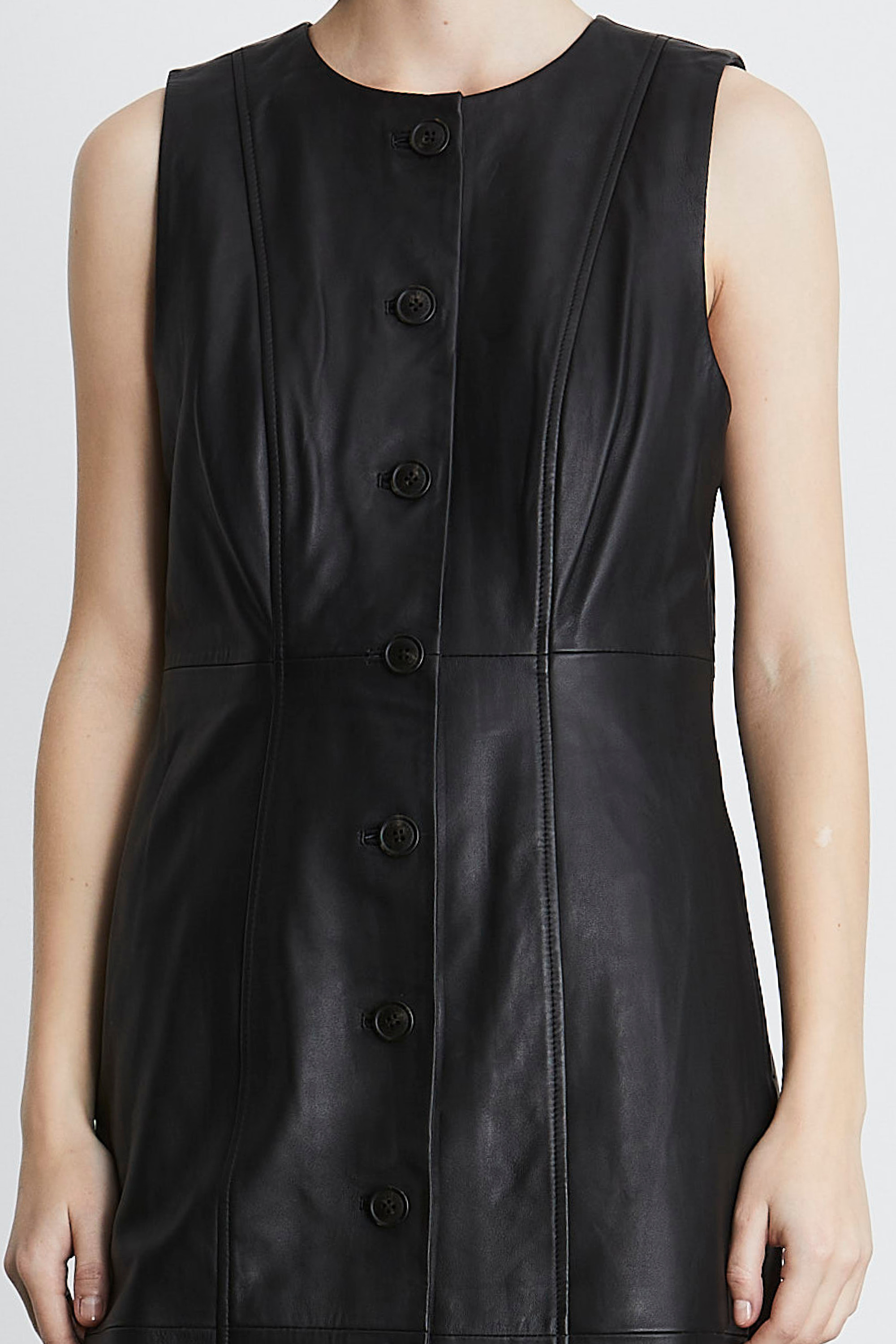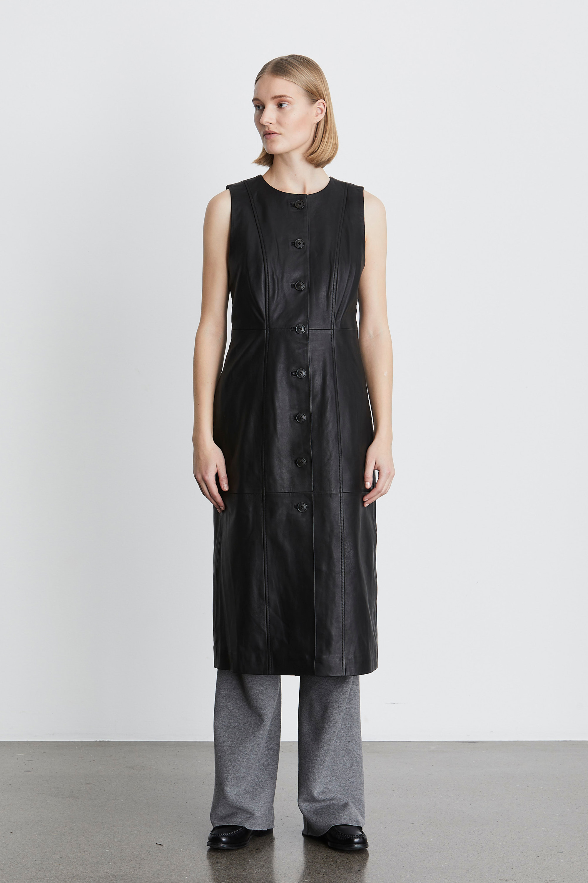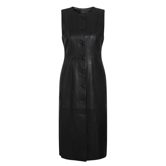 Vista læderkjolen er en udsøgt tilføjelse til enhver garderobe. Med sit elegante snit og luksuriøse lammeskindslæder udstråler denne lange spencer-kjole eksklusivitet.