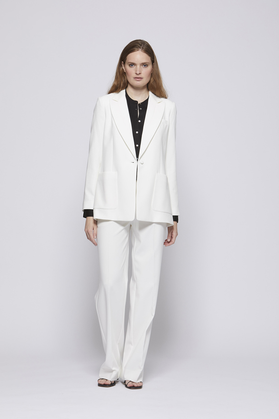 Bær med skarpe bukser for et fuldendt sæt, eller brug den over en let kjole for en kontrast mellem struktur og lethed.