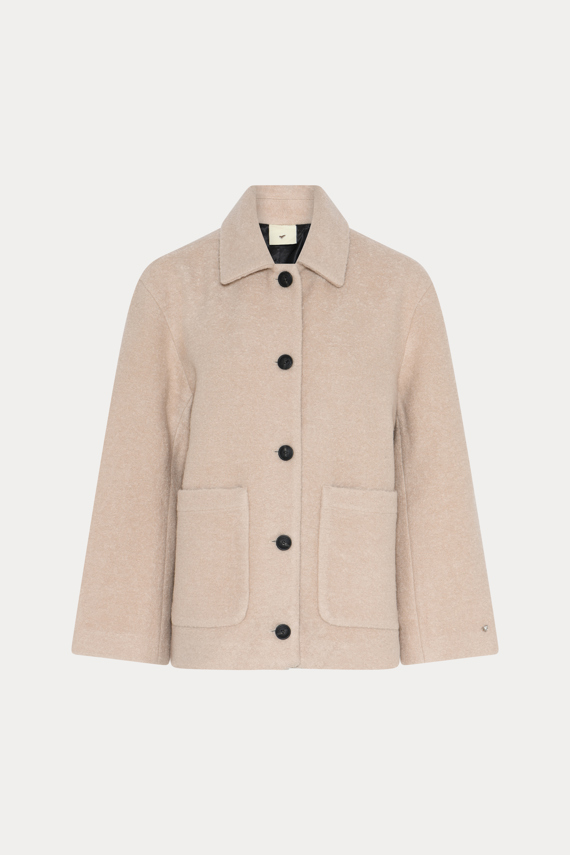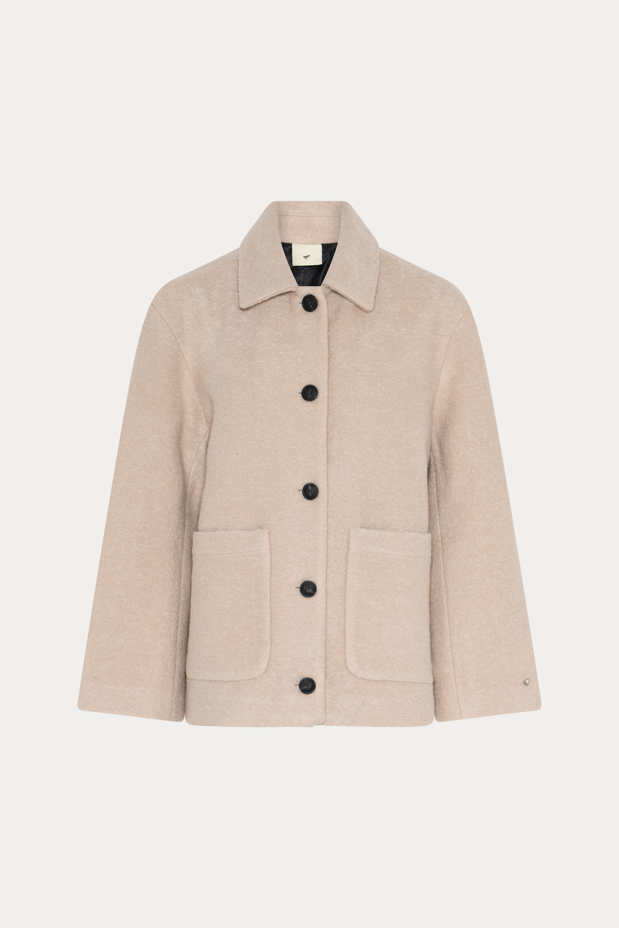 455HMJulian jacket is a short, straight jacket with a defined collar, large front pockets, and a clean, textured surface that creates a calm, rounded expression. Style it over a simple shirt and wide trousers for a relaxed, balanced look, or as a light outer layer over a printed blouse for added depth. - Straight, short fit - Front button closure - Large patch pockets - Lightly textured wool appearance