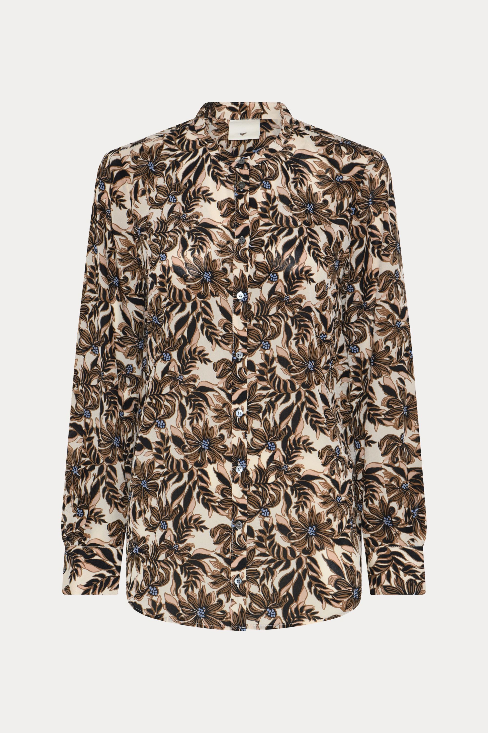 651HMMaple shirt is a lightweight shirt with classic button closure, a rounded hemline, and a beautiful print that gives the silhouette a calm, fluid expression.