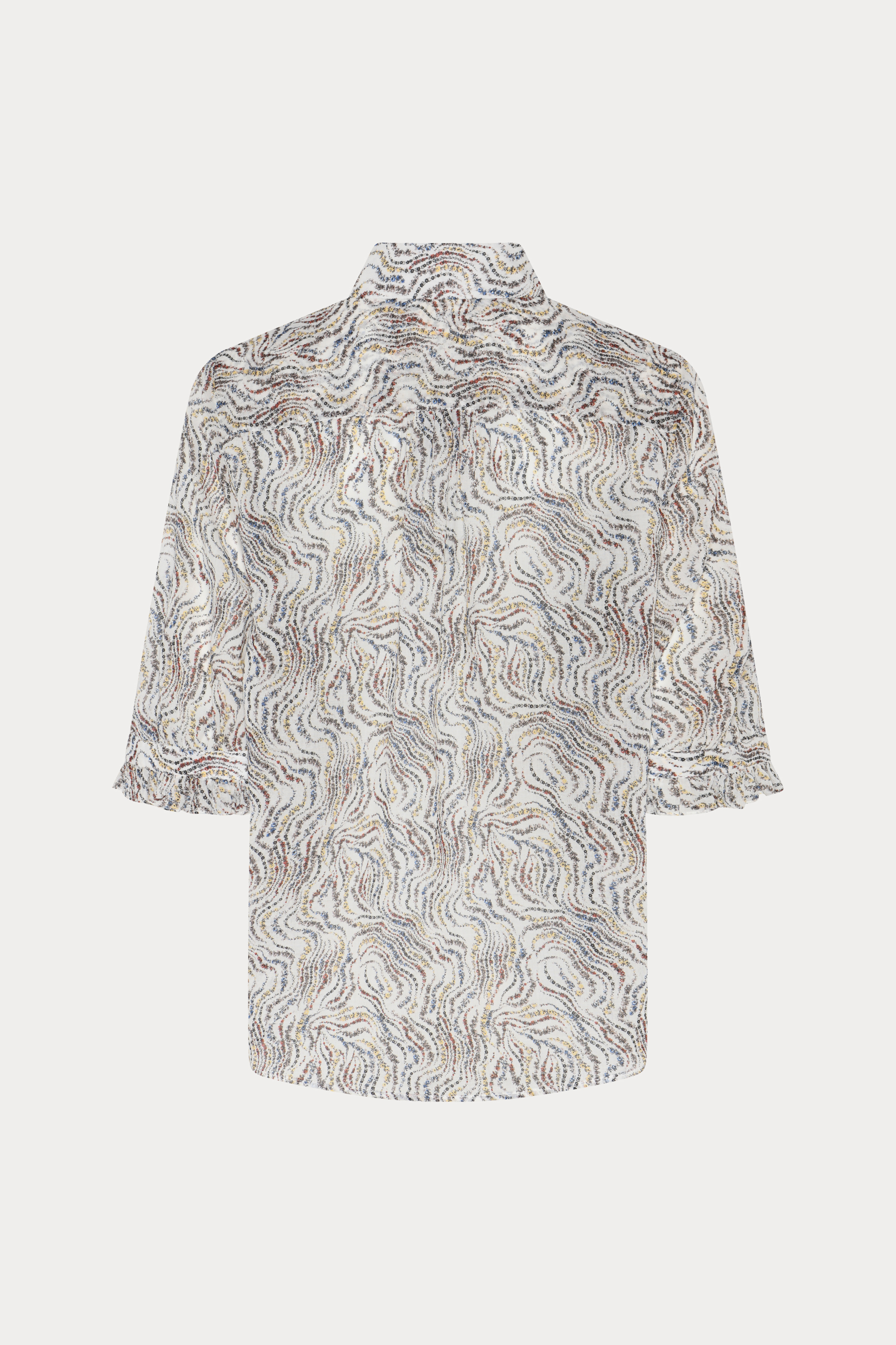 Style it with solid-coloured trousers for a clean look, or pair with denim for a more relaxed silhouette. The short sleeves with subtle volume and the airy drape create a feminine and effortless feel.