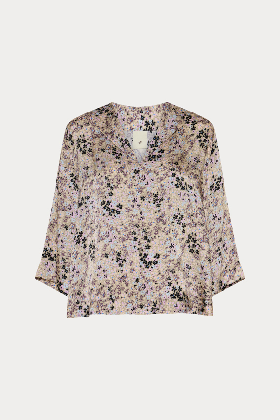 603HMTepa blouse is a light, cropped blouse with a relaxed drape, a soft V-neckline, and a floral print in subtle pastels that creates a calm, lively expression.