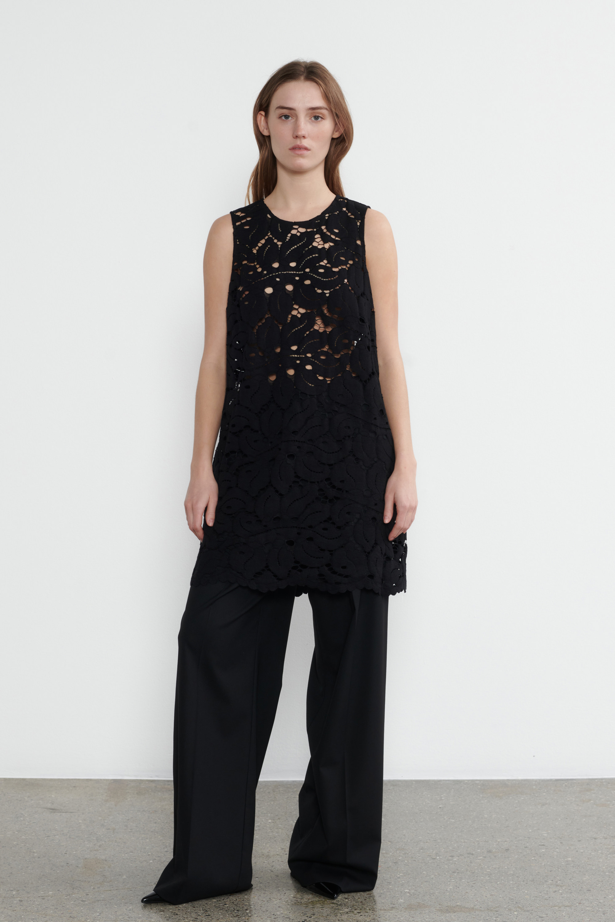 Hurin kjolen er en kort, ærmeløs kjole med et smukt, broderet design, der tilfører et eksklusivt og feminint touch.