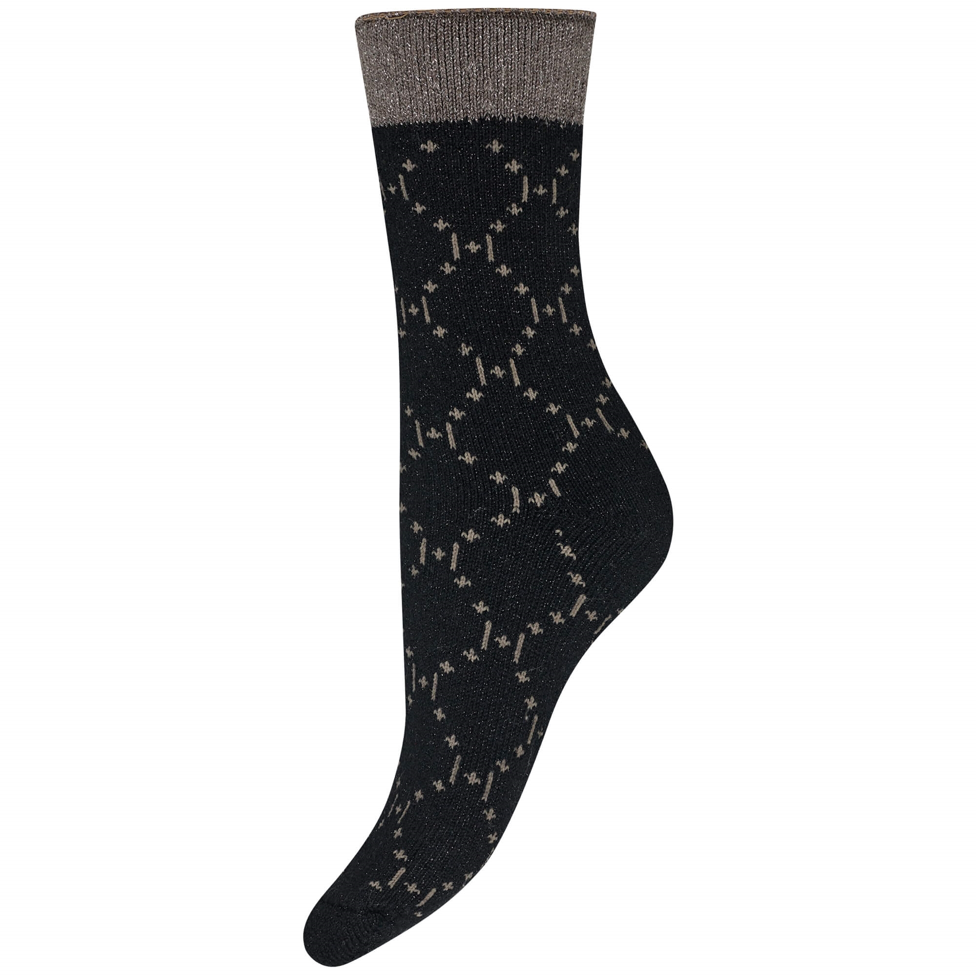 Sokkerne fra Hype The Detail kommer i en elegant sort farve med et raffineret guldfarvet logomønster, der tilfører et eksklusivt touch til dit outfit. Det strækbare og bløde materiale sikrer en behagelig pasform hele dagen, mens det diskrete glimmer ved kanten giver en ekstra feminin detalje.