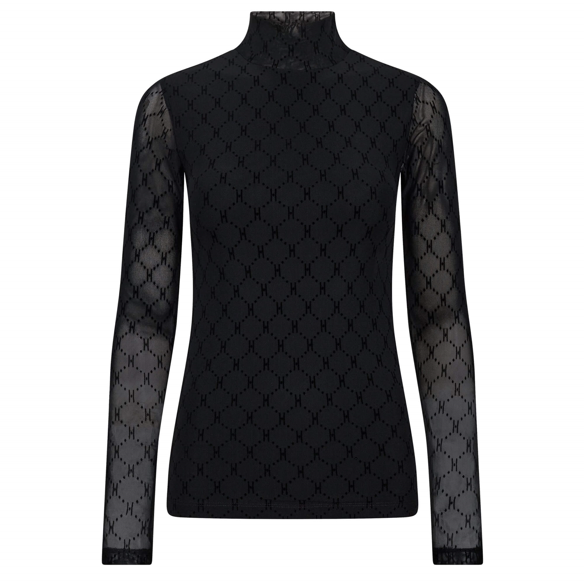 Elegant og tidløs meshbluse fra Hype The Detail i den klassiske sorte farve. Blusen er designet i et let og blødt materiale med et diskret allover-logo. Den har lange ærmer og en høj hals, som tilfører et moderne og sofistikeret touch til ethvert outfit. Blusen er ikke gennemsigtig, da der er syet et ekstra lag stof i, og derved er den kun gennemsigtig på ærmerne.