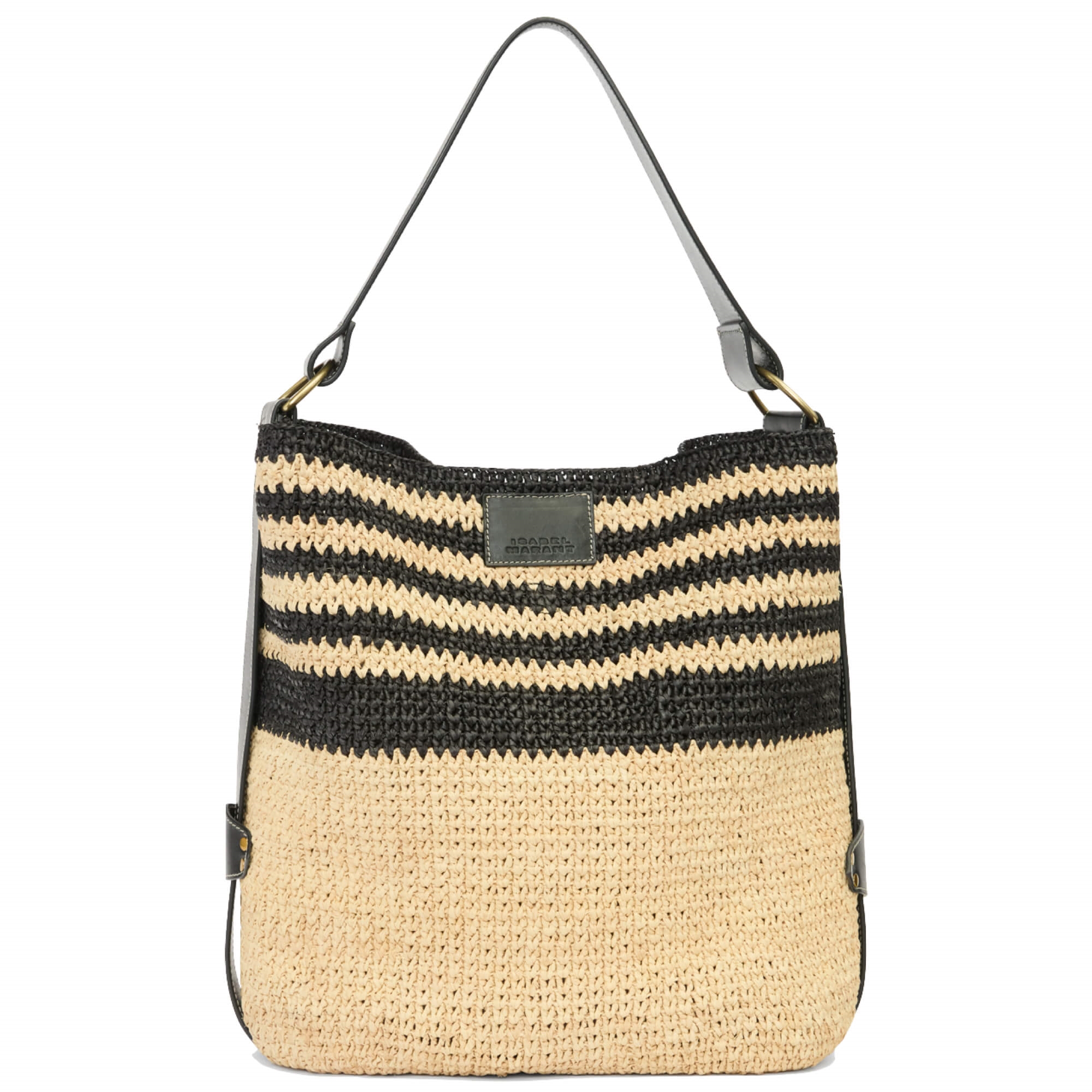 Isabel Marant Bayia Raffia Bucket Bag, Black/Natural