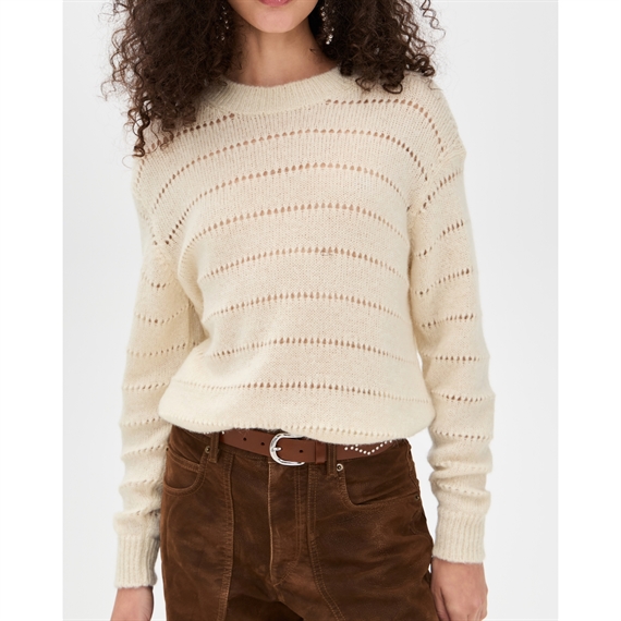 YONA fra Isabel Marant Etoile er en skøn ensfarvet åbenstrikket trøje med rund halsudskæring og lange ærmer. Trøjen er afsluttet med ribkanter ved ærmer og forneden, og har en afslappet pasform, der sikrer både komfort og stil - perfekt til alle anledninger!
