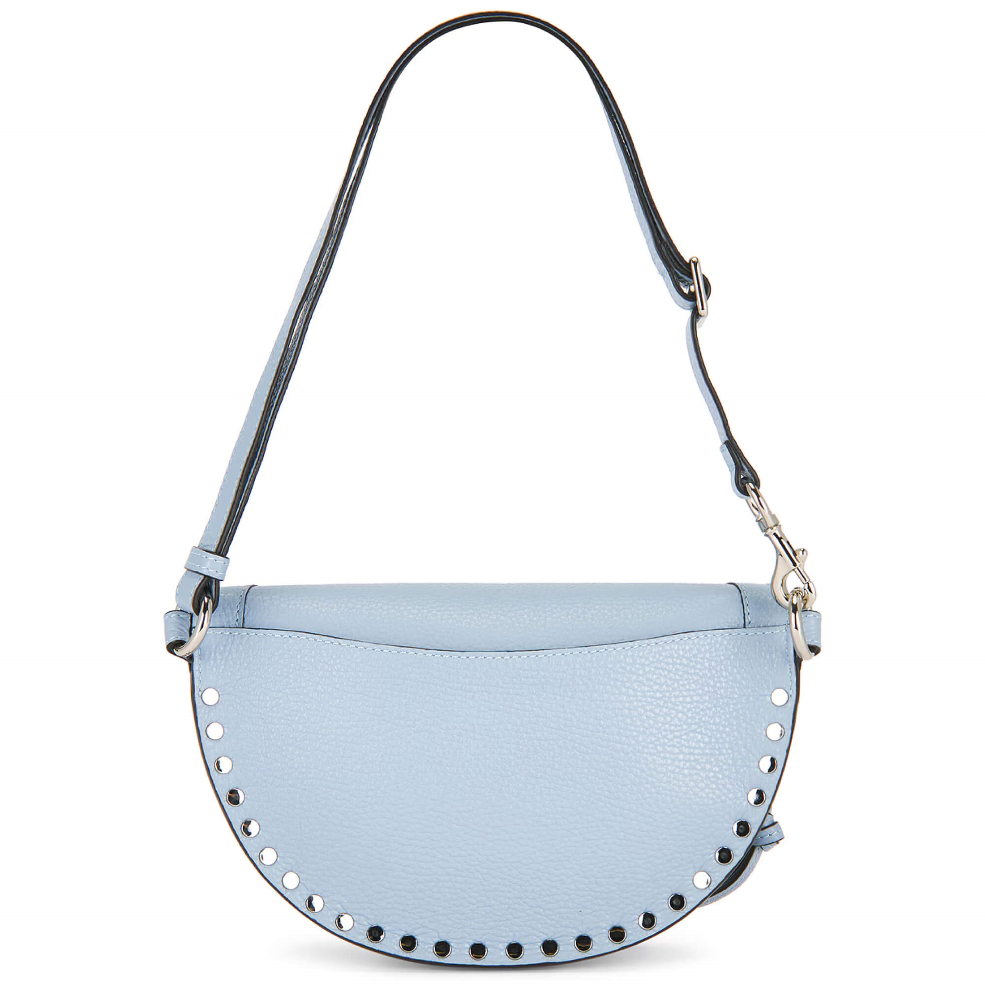SKANO fra Isabel Marant er en cool unisex bæltetaske i en lækker læder kvalitet med fine sølv-detaljer! i den fineste lyseblå farve! Isabel Marant tasken kommer med en justerbar rem og indvendig har den et stort rum med god plads til mobil, pung og andre småsager man lige skal have med på farten. SKANO er den helt perfekte hverdagstaske, som giver dit outfit et cool udtryk med de rå nitte detaljer på fronten og bagpå. En absolut Isabel Marant favorit!