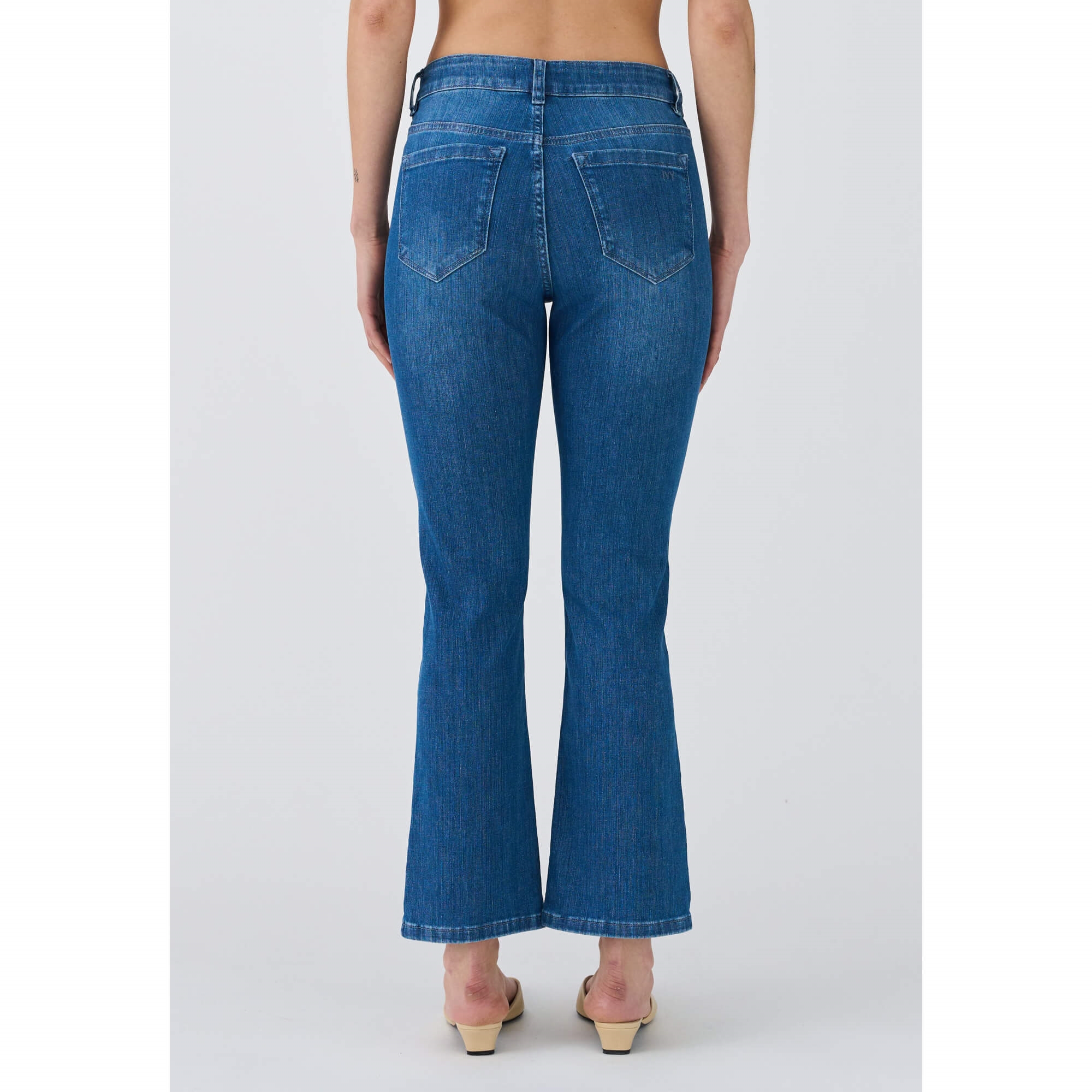 IVY Copenhagen med mid waist og tætsiddende pasform, der afsluttes med et cropped kick flare-ben. De klassiske 70’er-inspirerede lommedetaljer giver et stilfuldt twist, mens den høje stretch sikrer en behagelig pasform hele dagen. Jeansene er særligt flatterende til kortere ben og er perfekte til at fremhæve dine sko.