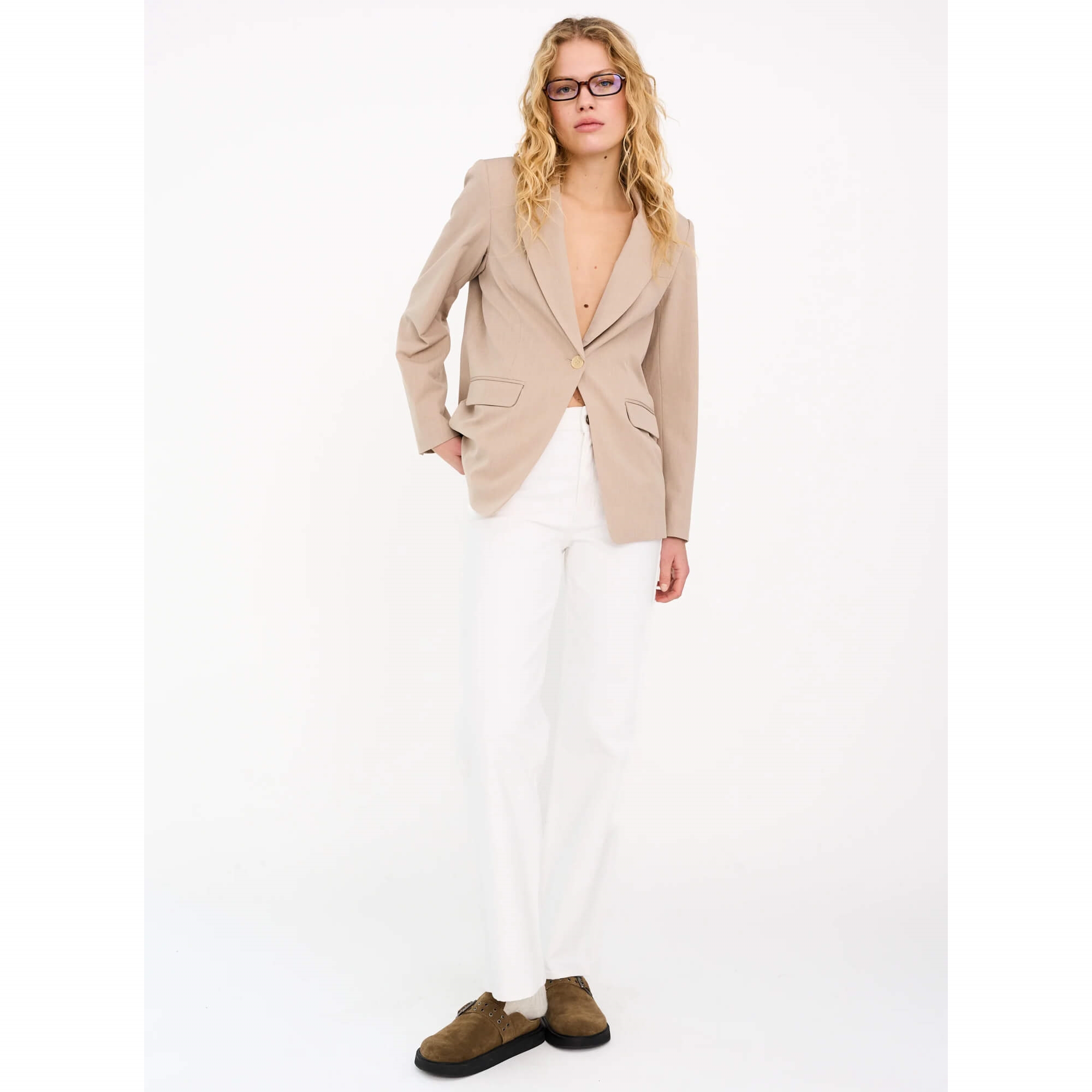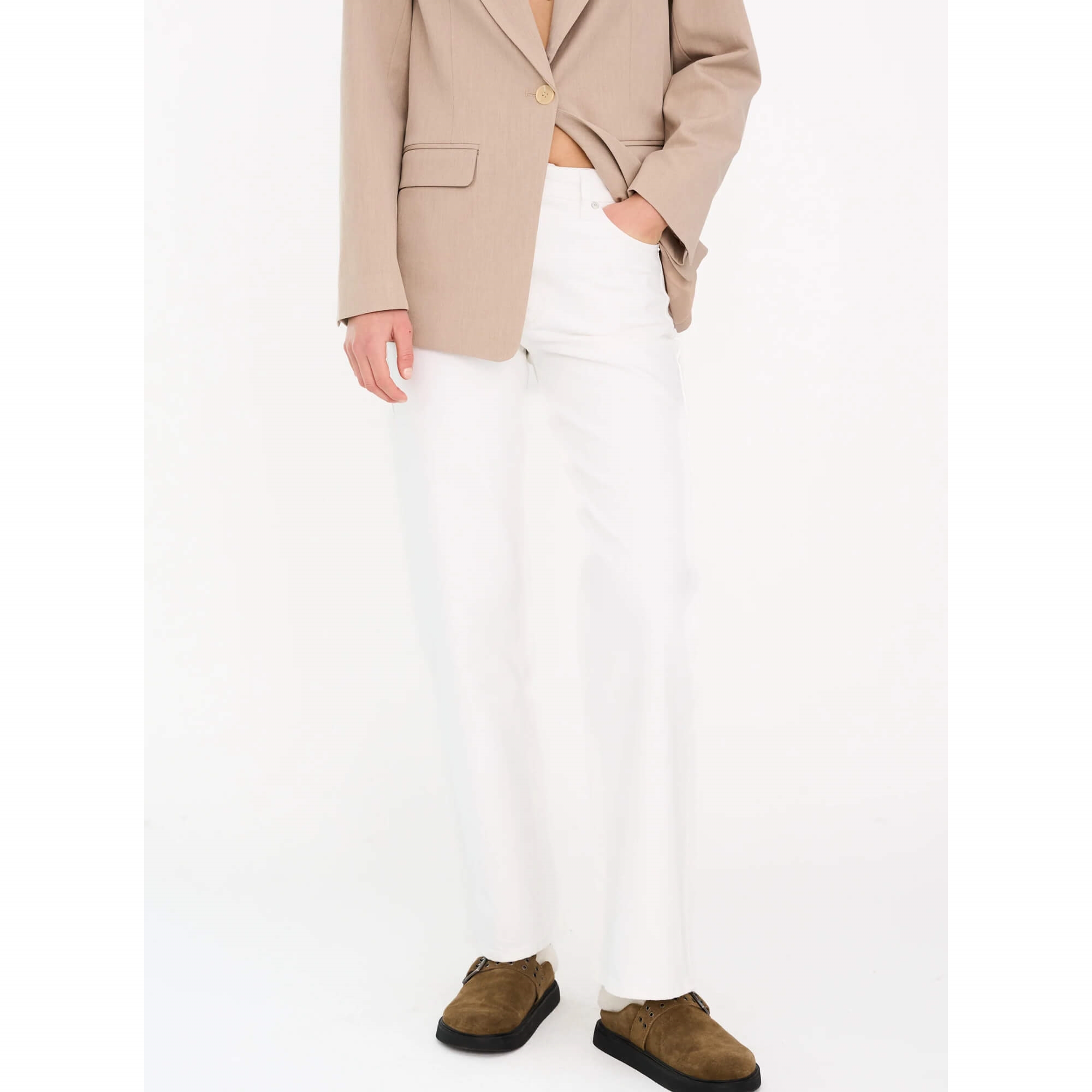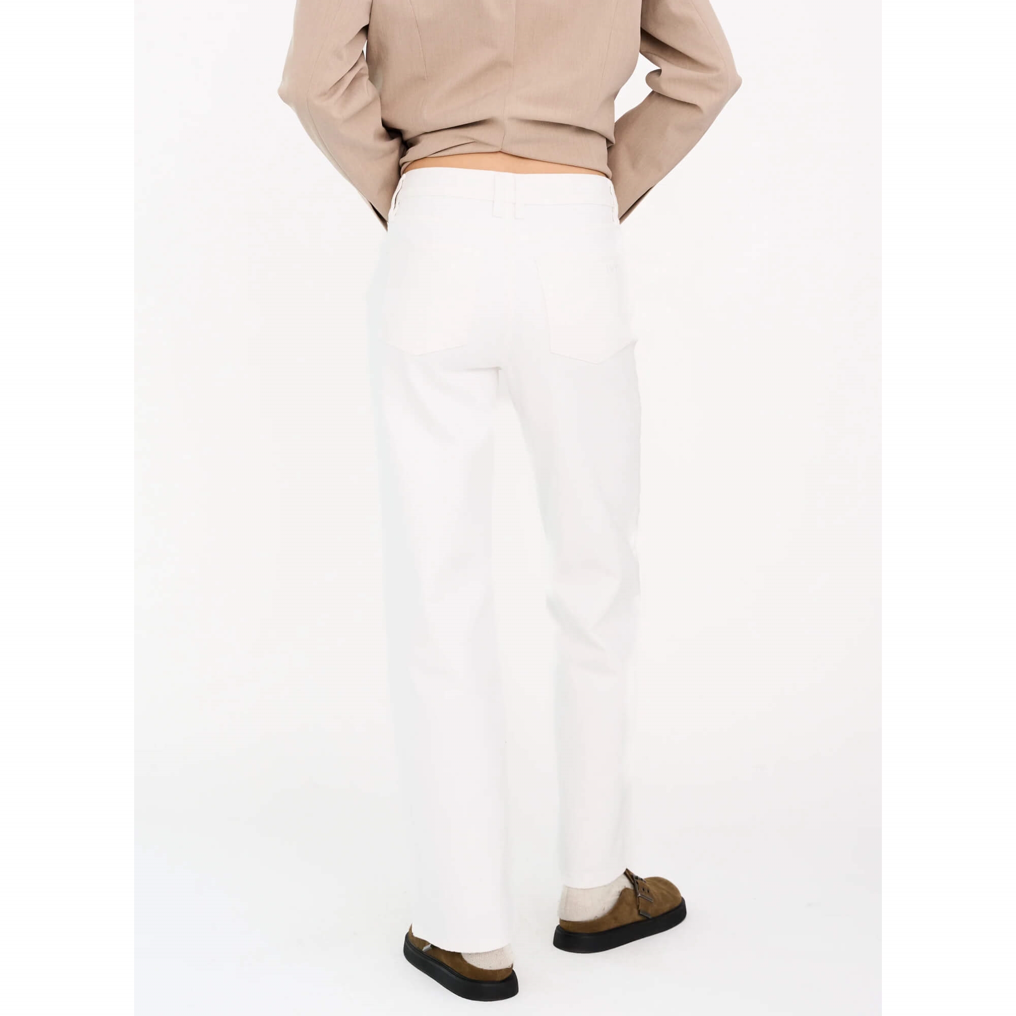 Opgrader din denim-garderobe med de nye Mia Jeans fra Ivy Copenhagen i den friske farve Optical White. Den høje talje og den klassiske straight-leg silhuet skaber et flatterende og moderne look, der både føles afslappet og stilrent. Den rene hvide vask giver et eksklusivt og sommerligt udtryk, som nemt kan styles til både hverdags- og mere elegante outfits.