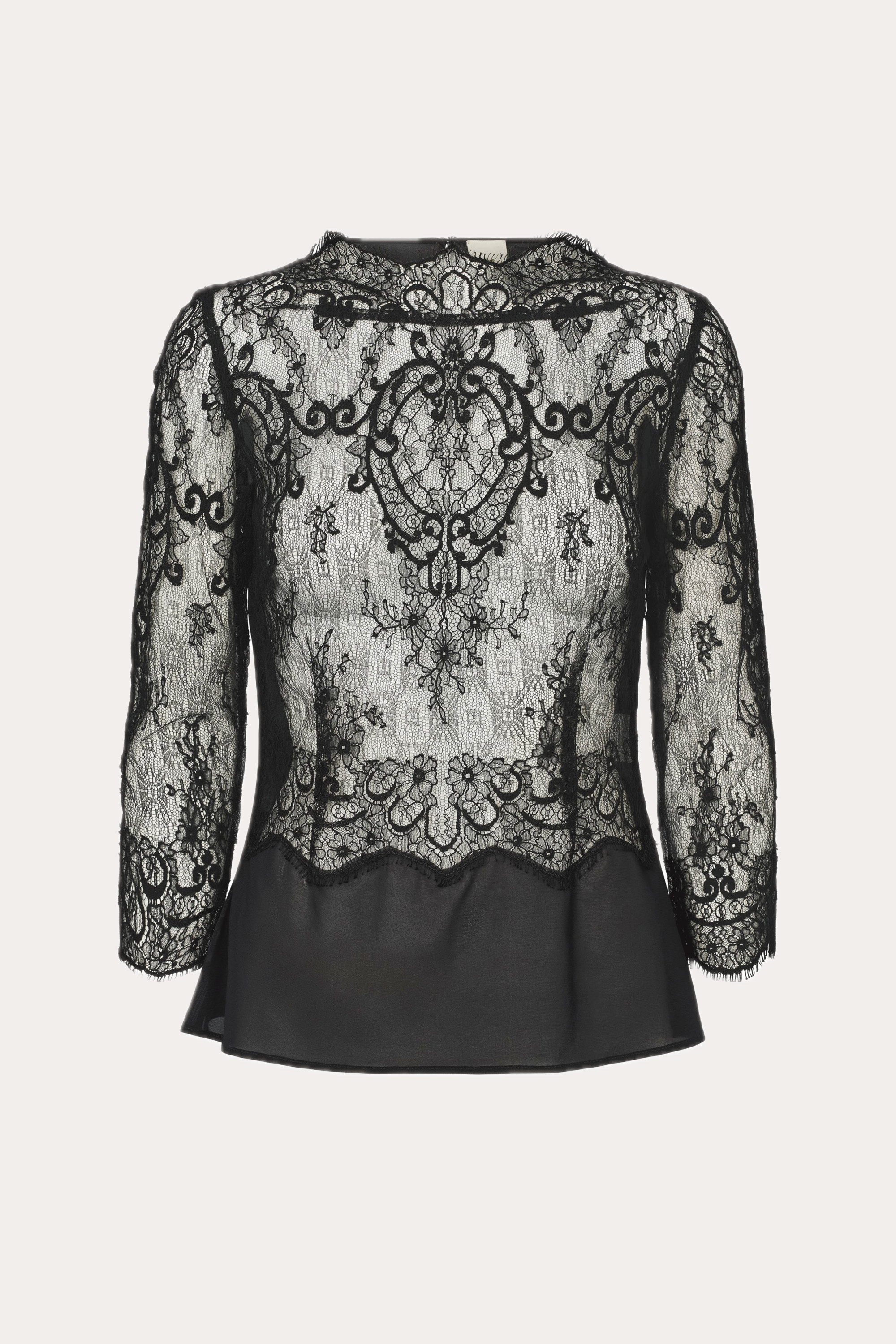 Jupa er designet et i fint blonde materiale med et iøjnefaldende mønster og en smuk halsudskæring