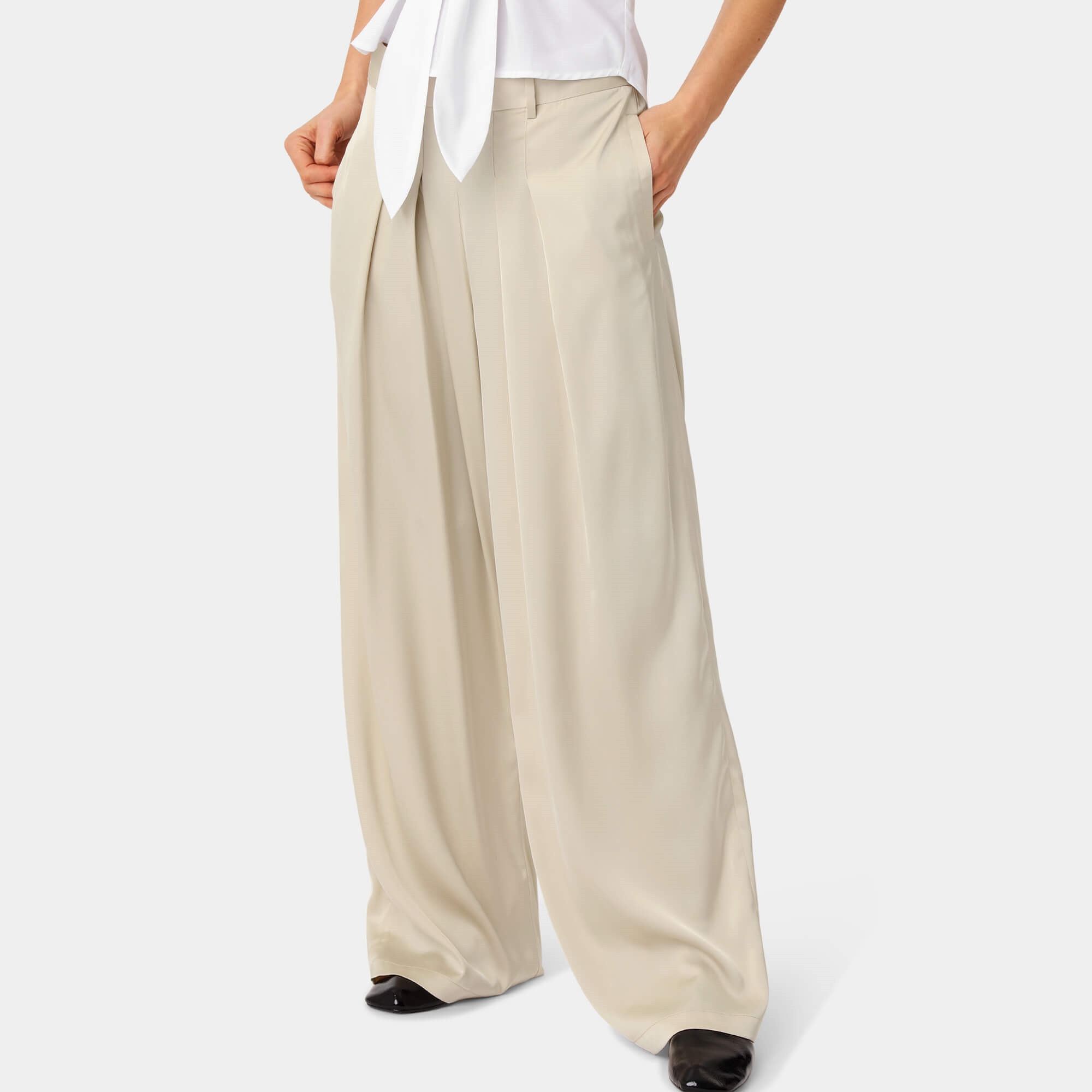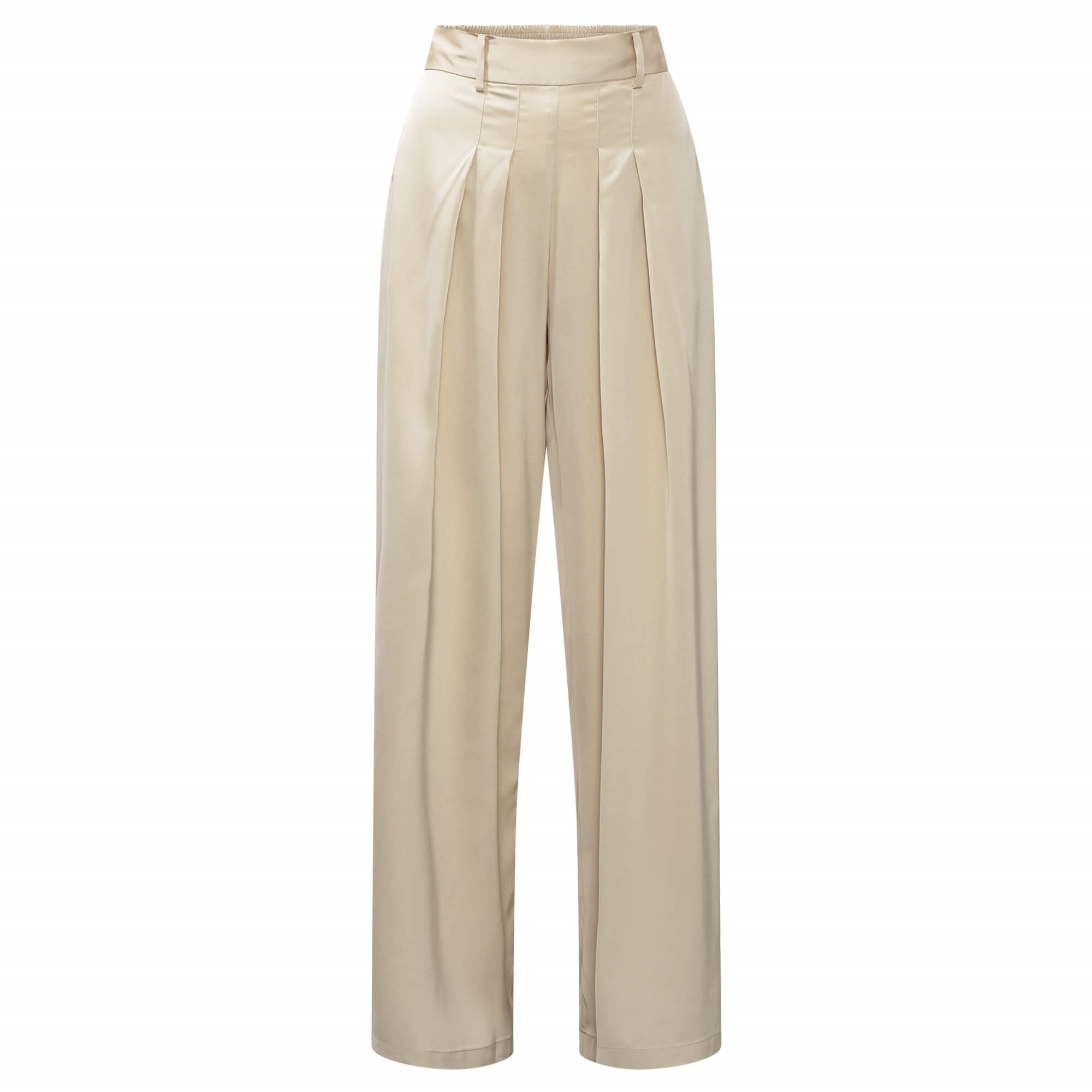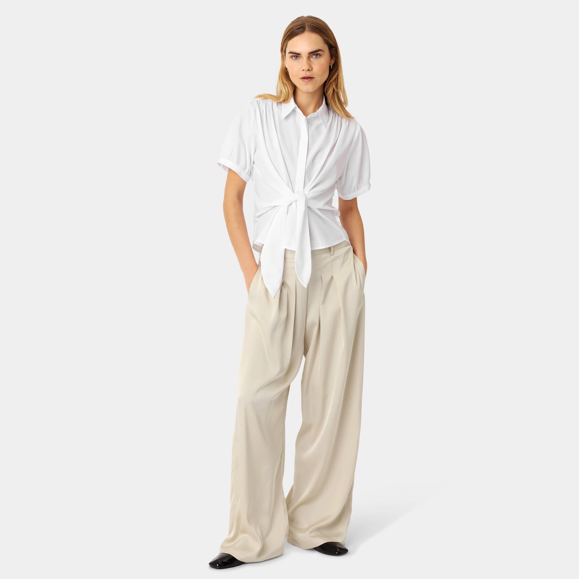De skønne Blake Bukser fra Karmamia er et par elegante, lyse bukser med høj talje og vide ben, der giver et sofistikeret og tidløst look. De fine pressefolder foran tilfører et skarpt, klassisk udtryk, mens den elastiske linning bagpå sikrer komfort og en flatterende pasform. Perfekte til både hverdagsbrug og festlige anledninger, hvor du ønsker et stilrent og alsidigt outfit. Du kan matche med den fine Miller Blazer for et fuldendt look i den smukke lyse farve.