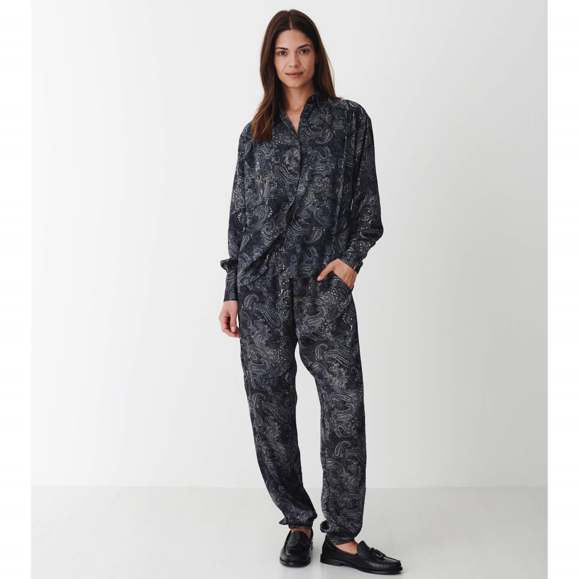 Lækreste bukser fra Karmamia i det smukke Gaia Paisley print. Cora Pants er designet elastikbånd både i taljen samt ved anklerne, og ligeledes et bånd i taljen og lommer til hænderne i siden. Bukserne er smukke til diverse T-shirts og toppe, men passer også perfekt som et sæt sammen med den matchende Cornelia skjorte eller Eloise topi samme print fra Karmamia. De smukke Cora bukser er perfekt til hverdag, men printet gør også at du kan bruge dem til festlige anledninger med et par stilletter.