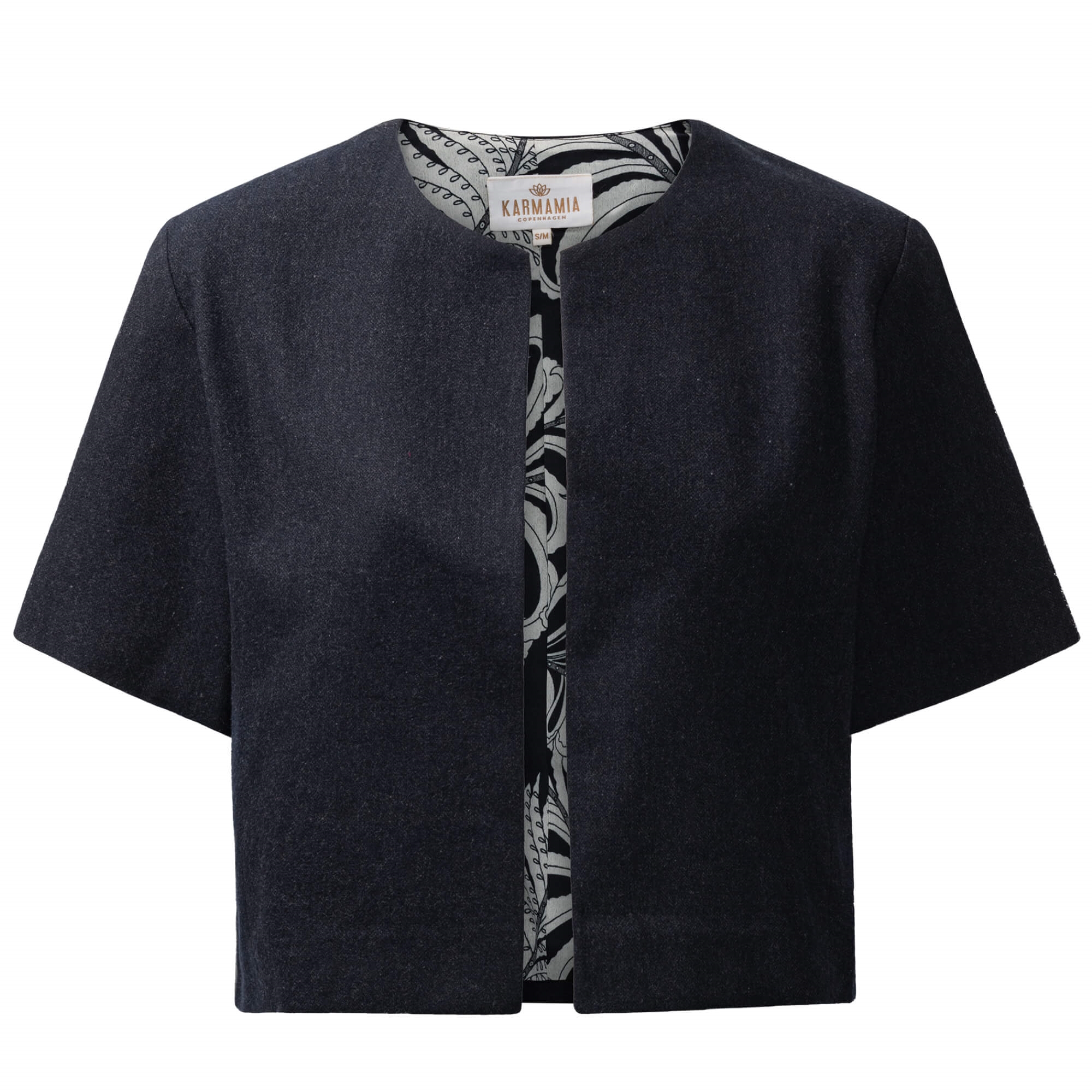 Denne skønne kortærmet jakke fra Karmamia i en lækker uldblanding med satinfor er din nye favorit i garderobeskabet. Den er perfekt ud over et kortærmet top og et par jeans for et hverdagslook, eller over en kjole for et mere fint og elegant look.
