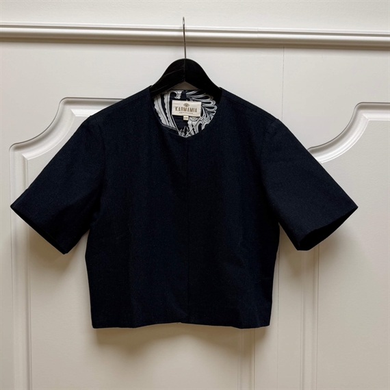 Denne skønne kortærmet jakke fra Karmamia i en lækker uldblanding med satinfor er din nye favorit i garderobeskabet. Den er perfekt ud over et kortærmet top og et par jeans for et hverdagslook, eller over en kjole for et mere fint og elegant look.