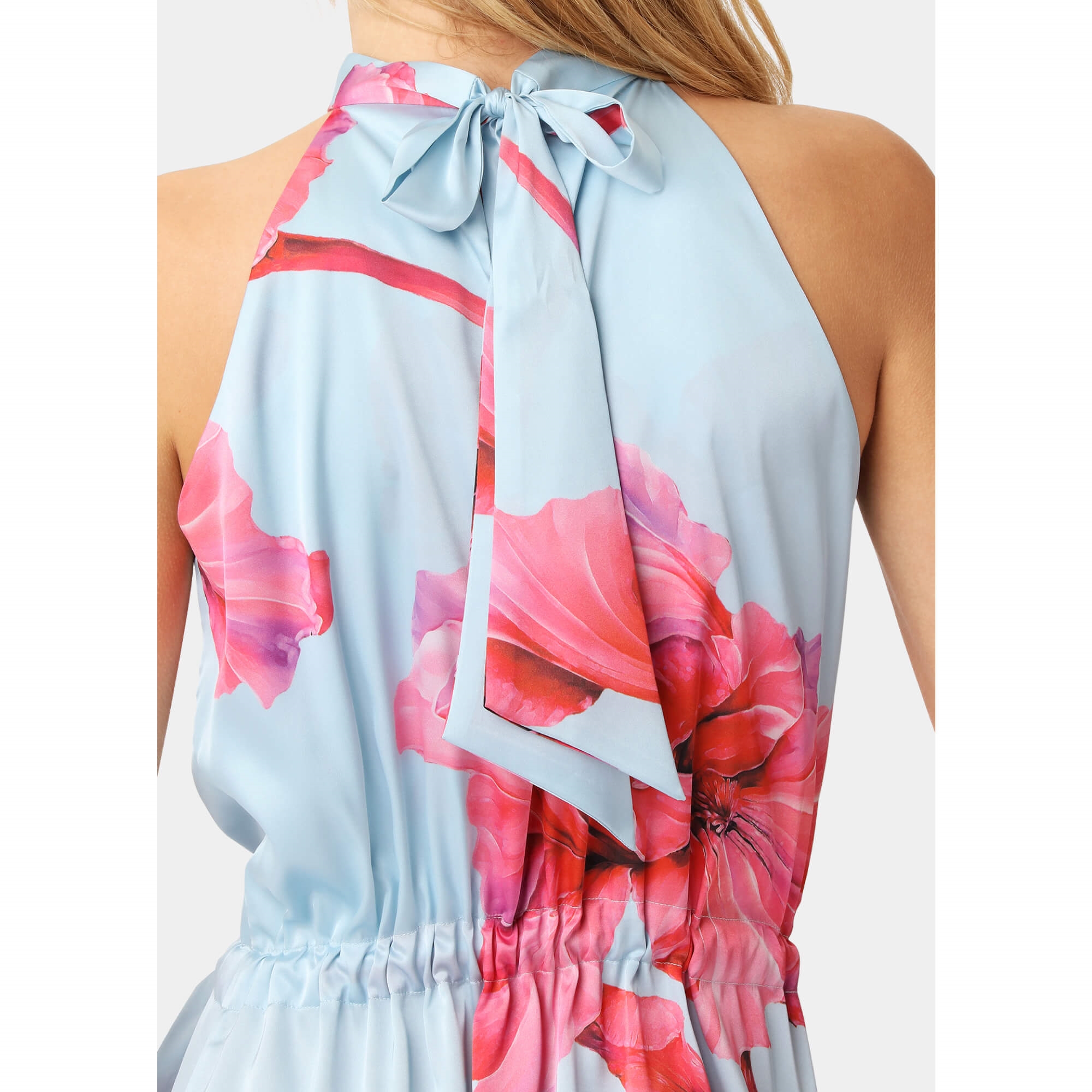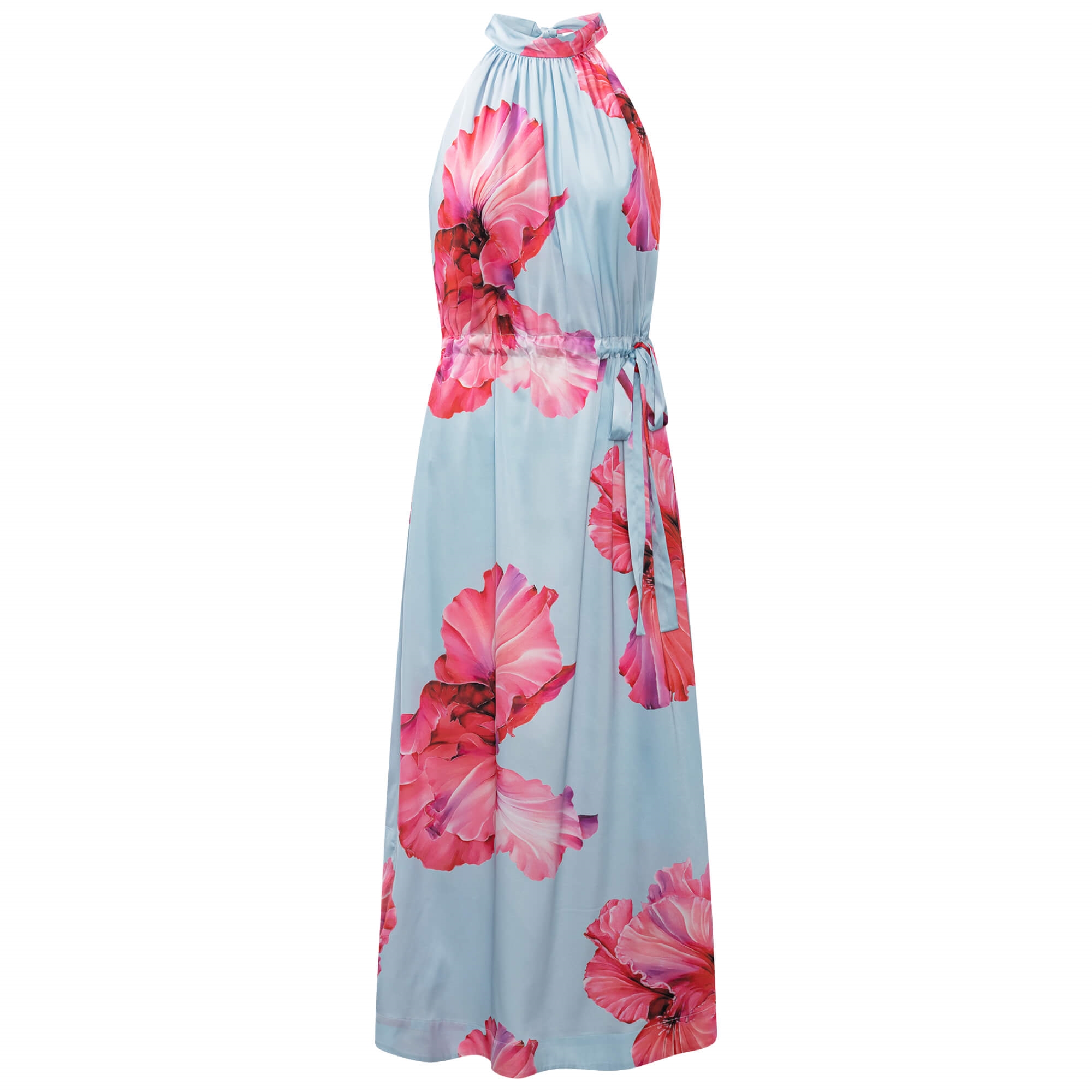 Denne smukke, lange kjole er det perfekte valg til enhver festlig anledning. Designet har en elegant, høj hals med bindebånd samt et bindebælte i taljen, der fremhæver silhuetten og skaber en feminin pasform. Layla-kjolen er fremstillet i en blød og behagelig satin, der falder let og giver et eksklusivt udtryk. Den fås i flere forskellige farver og mønstre, så du kan finde din personlige favorit. Style den med hæle til fest eller dress den ned med en jakke og flade sko for et mere afslappet look.