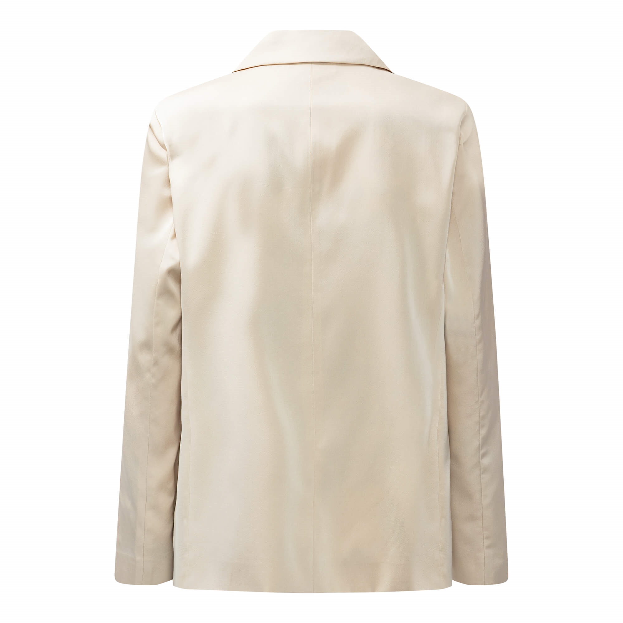 Miller Blazer No. 4 fra Karmamia er en oversized blazer i deres skønne tykke satin kvalitetet som giver et sofistikeret og tidløst udtryk. Den har et enkelt knapluk og praktiske lommer, der tilfører et afslappet, men elegant look. Den rummelige pasform gør den nem at style både over en skjorte, strik eller kjole, og den er perfekt til at løfte både hverdags- og kontoroutfits.