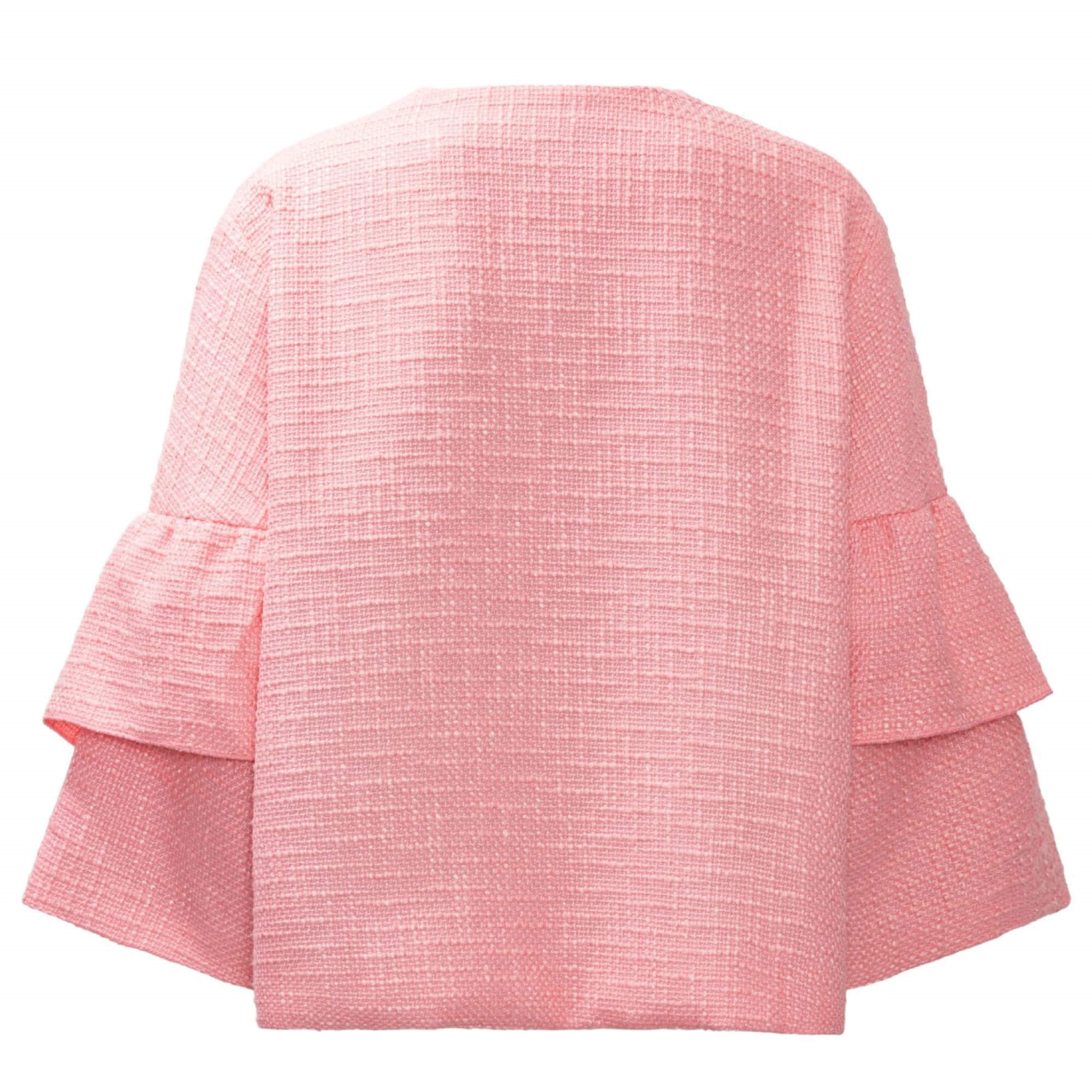 Spencer No. 113 Jacket fra Karmamia en ny udgave af den populære Kennedy Jacket i en flot og feminin kortere version. Jakken er designet med i en flot væv uldkvalitet med de skønneste flæser på begge ærmer. Den er afsluttet med rundet halsudskæring og gennemgående trykknaplukning. Brug den som et ydre lag på milde efterårsdage eller ud over en kjole til en festlig lejlighed.