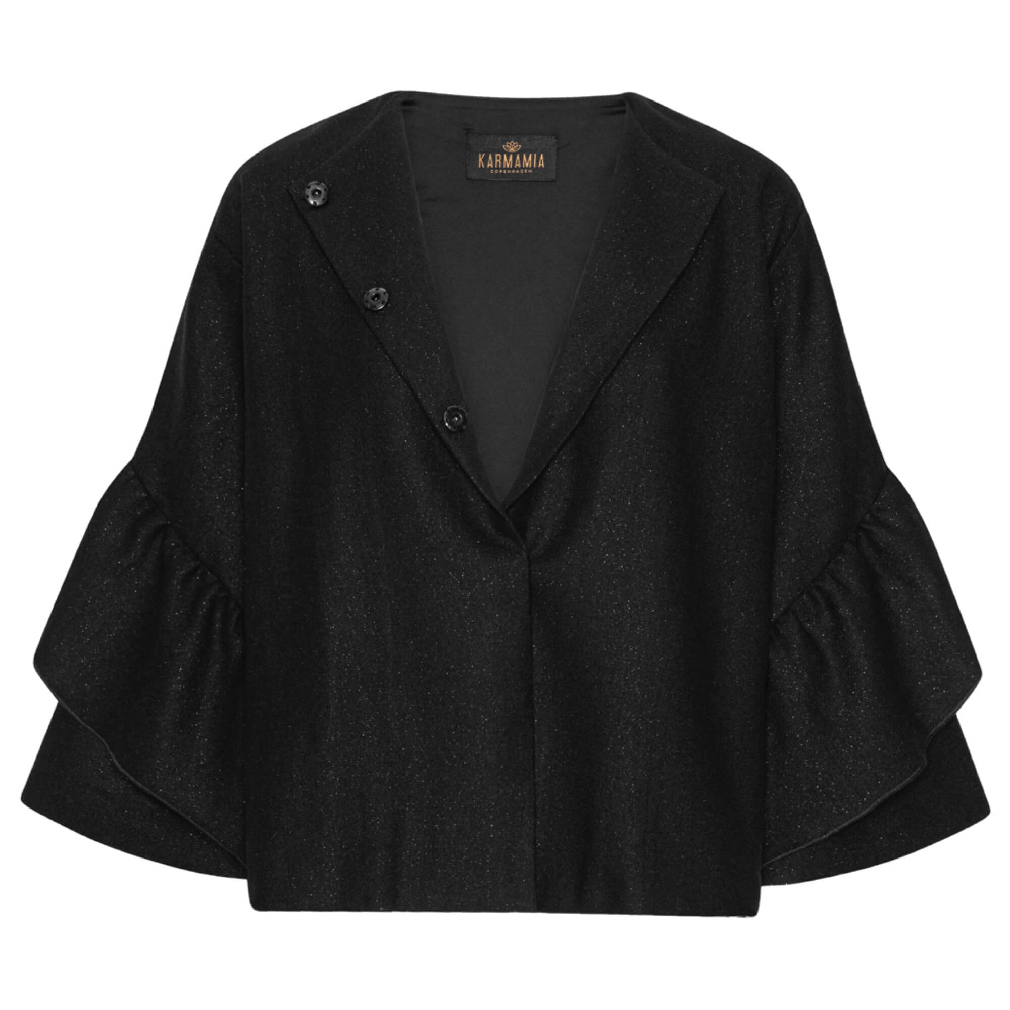 Spencer No. 85 Jacket fra Karmamia en ny udgave af den populære Kennedy Jacket i en flot og feminin kortere version. Jakken er designet med i en flot væv uldkvalitet med de skønneste flæser på begge ærmer. Den er afsluttet med rundet halsudskæring og gennemgående trykknaplukning. Brug den som et ydre lag på milde efterårsdage eller ud over en kjole til en festlig lejlighed.