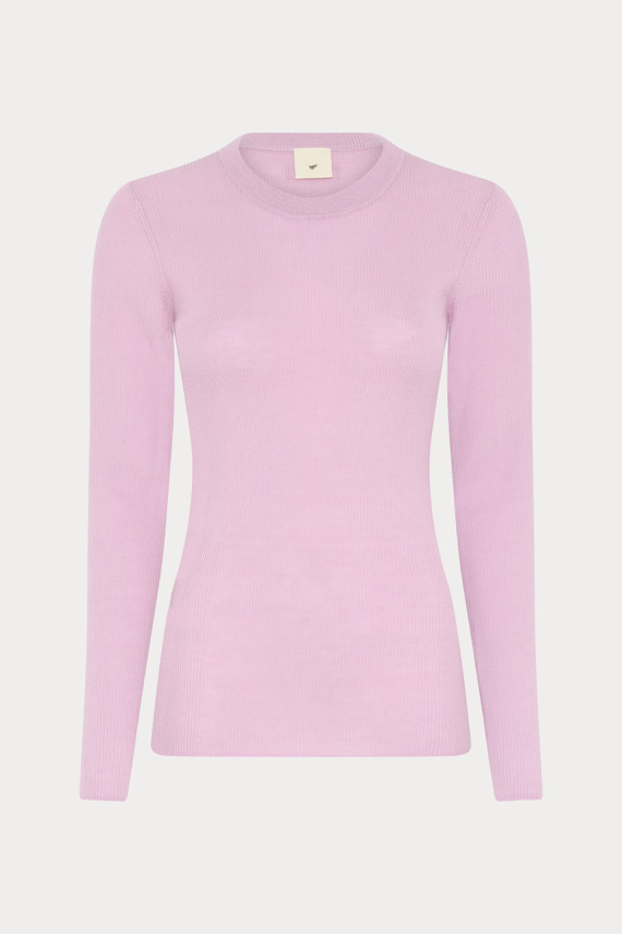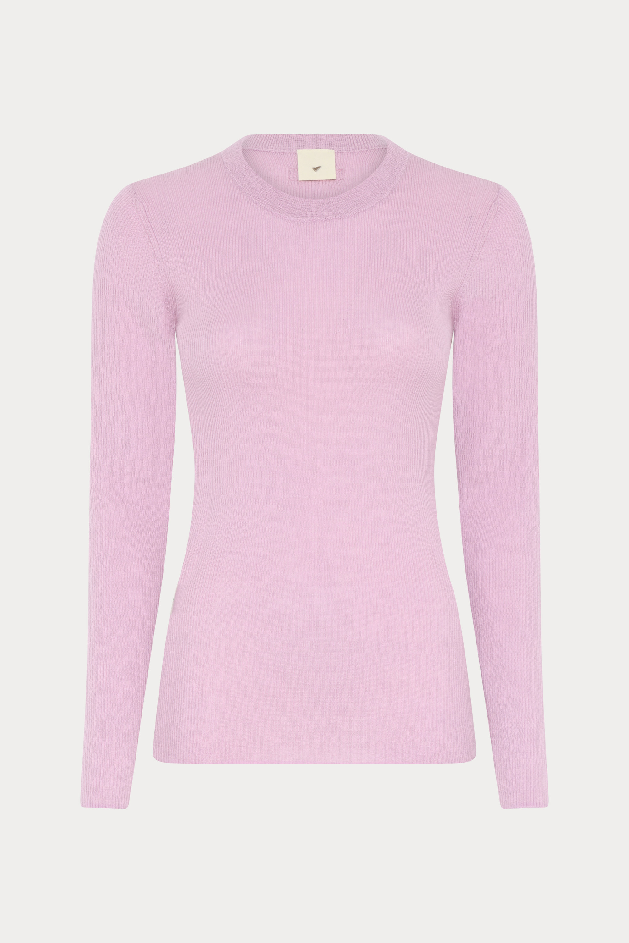 Katuna er en tætsiddende bluse med O-hals og en fast ribstruktur. Perfekt til en enkel og elegant stil.