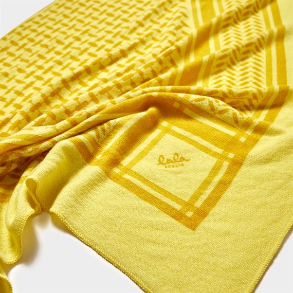 Triangle Trinity Classic M er et luksuriøs trekantet tørklæde fra Lala Berlin i den fine farvekombi af lysegul og en mere mørk gul som vi bare er helt vilde med. Tørklædet er i str M. som er den mest populære størrelse. Triangle Trinity Classic er den klassiske serie fra Lala Berlin med deres ikoniske og smukke Kufiya mønster. Det gode klassiske Lala Berlin tørklæde er godt sammen med stortset alt. Dette kan bruges som et tørklæde i halsen eller som et sjal over skulderen på de ekstra kolde dage det kan styles på flere forskellige måder. Brug det sammen med din ynglings jakke og sko for et fedt efterårs/vinter outfit. Du er sikret at have et behageligt tørklæde på der ikke kradser da det er lavet af 100% kashmir.