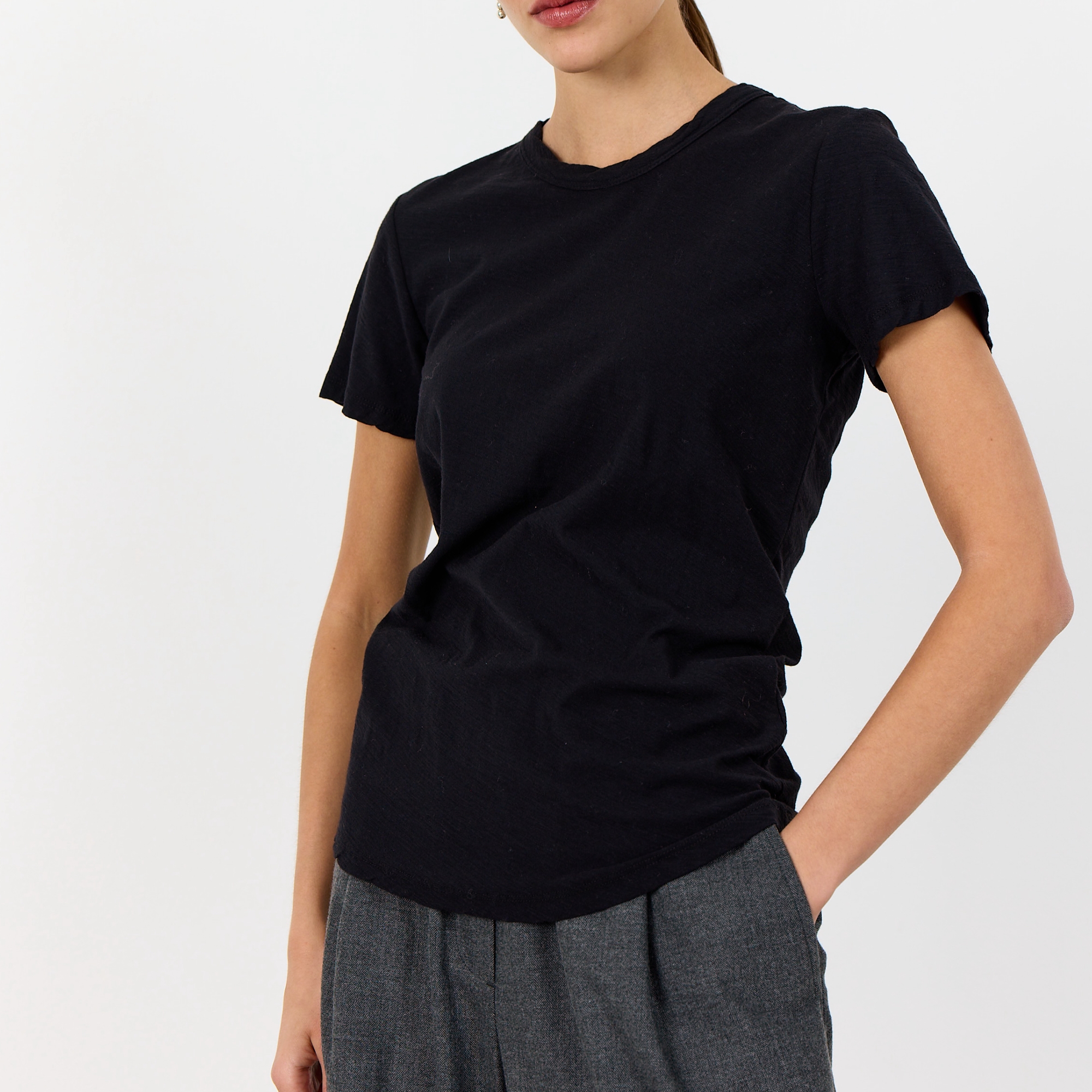 Lækker LR-ANY 1 basis t-shirt fra Leveté Room med rund halsudskæring og udformet i en økologisk bomuld. Denne t-shirt er perfekt at bruge sammen med alle styles i hverdagen og er den perfekte basis t-shirt at have hjemme i sin garderobe, der nemt kan sættes ind under en strik eller blazer eller hvad man nu kan have behov for at have noget indenunder.
