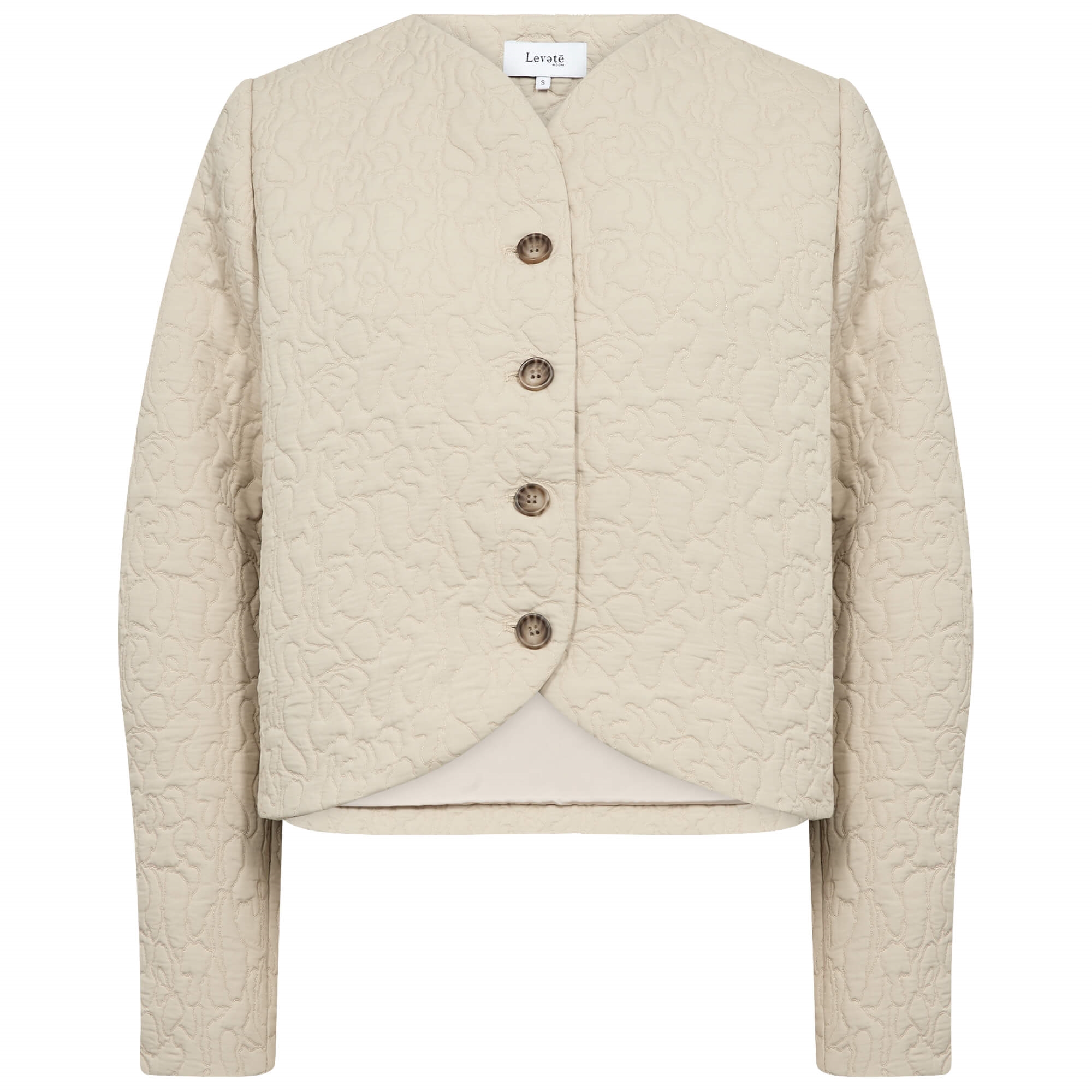 LR-PIPPA 1 er en elegant jakke i 100 % polyester med rund halsudskæring, fire dekorative knapper og et diskret struktureret mønster. Perfekt til både bukser og kjoler for et stilrent og feminint look.