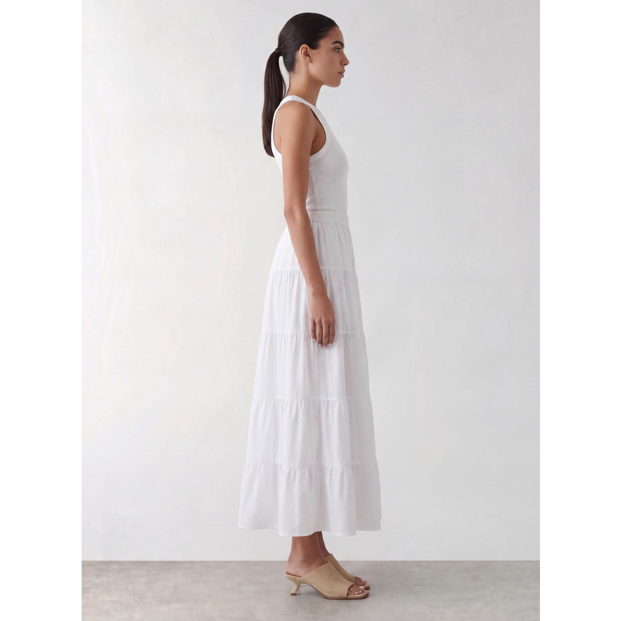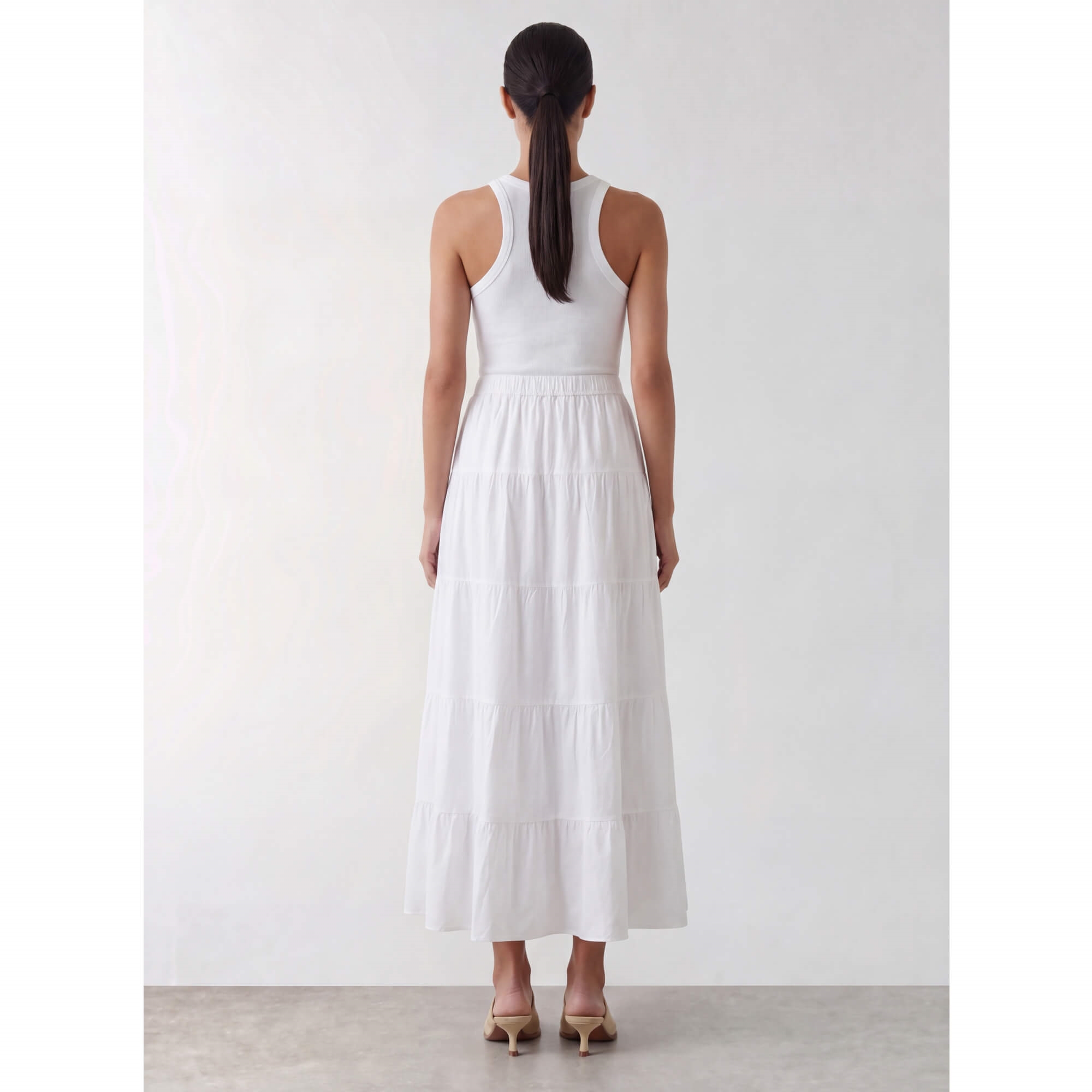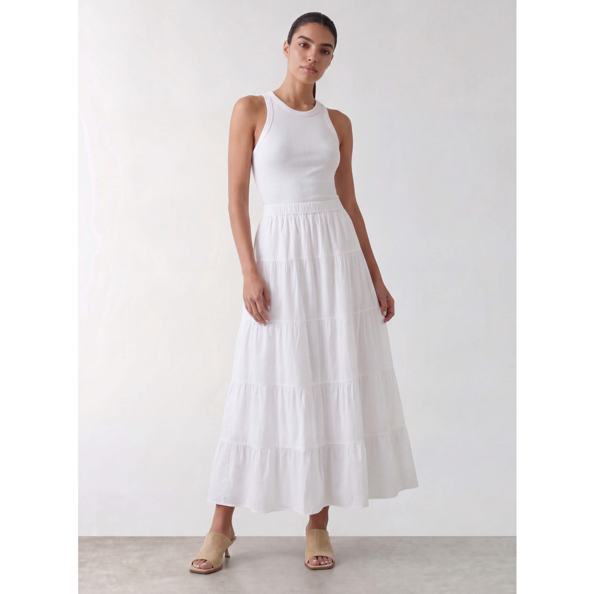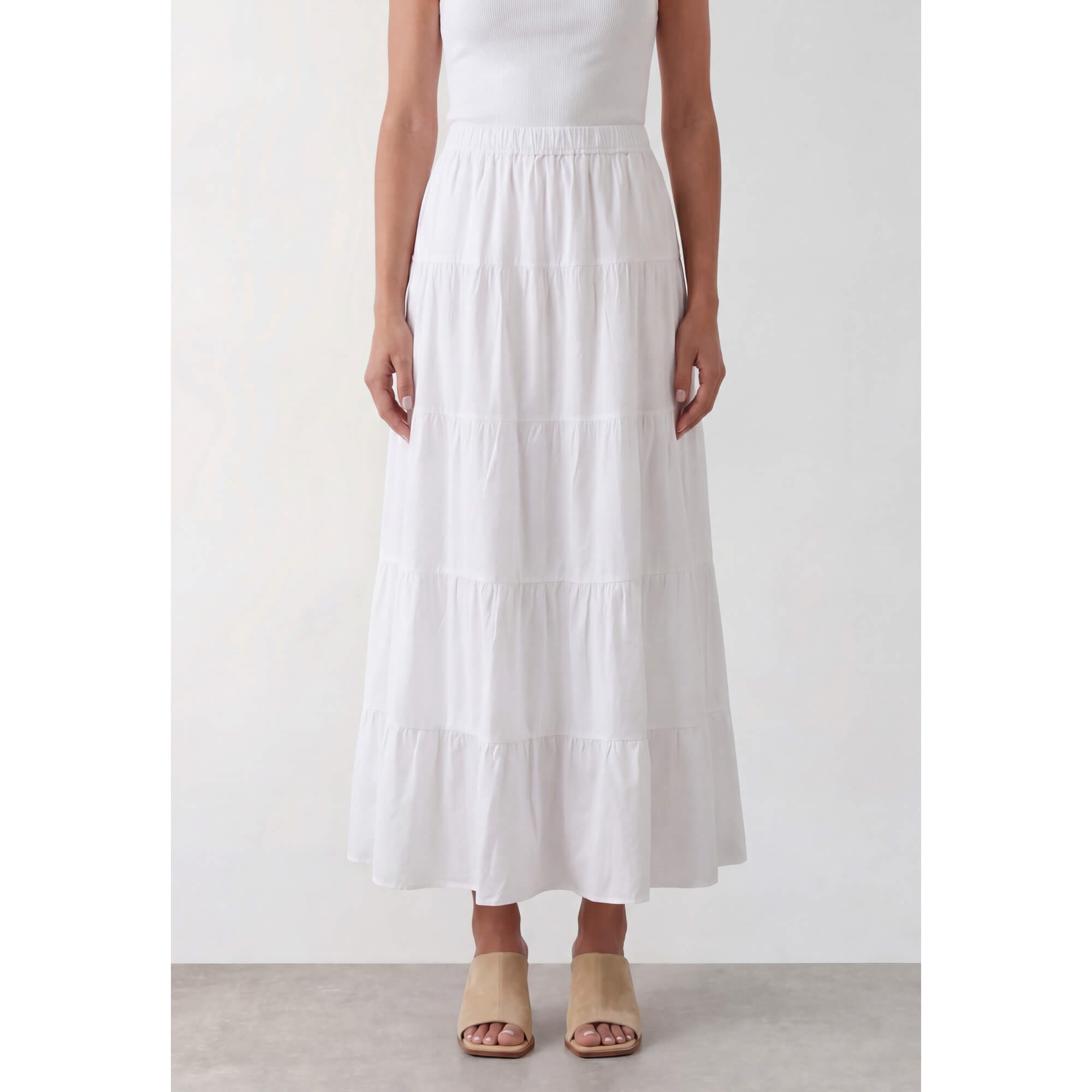 LR-ROSY 1 er en smuk nederdel lavet af 100% økologisk bomuld. Den har et lagdelt design, der falder yndefuldt til ankelhøjde med en behagelig elastisk linning. Sæt den sammen med en enkel top og sandaler for et elegant look.