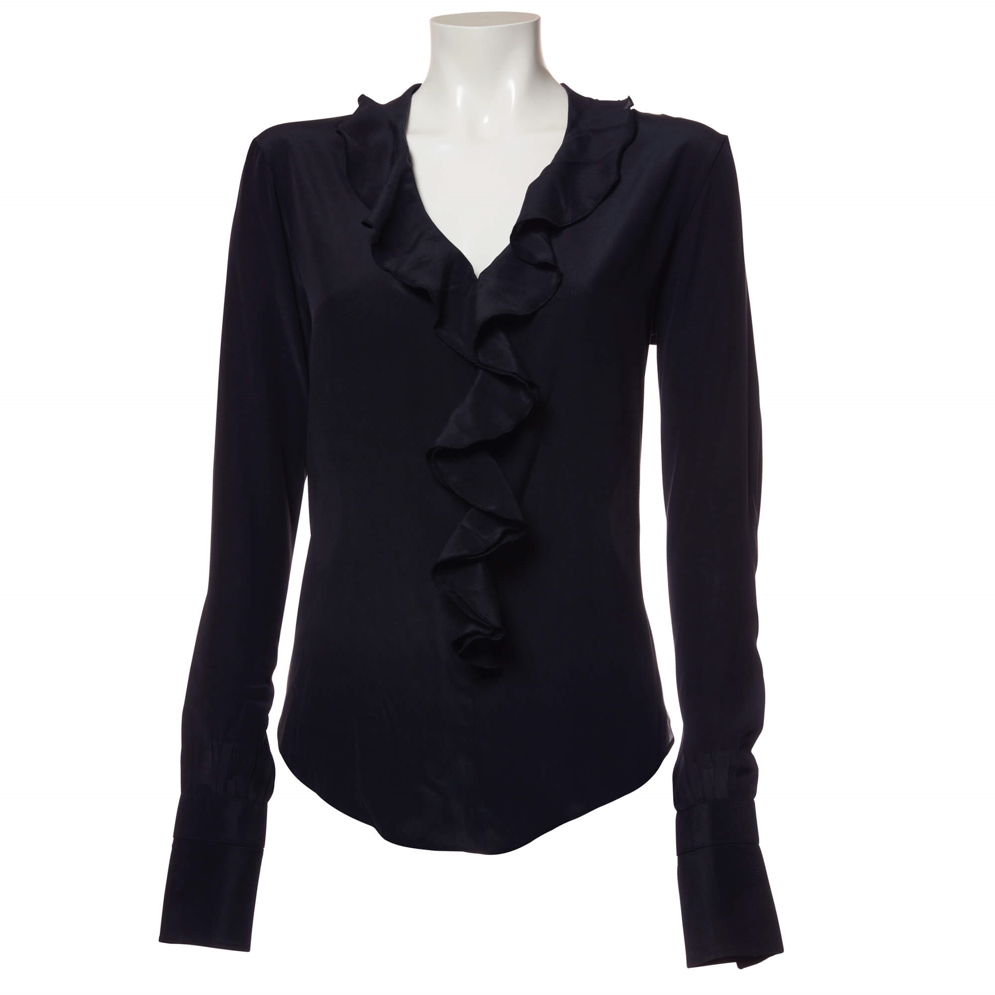 Alexis skjorten fra Louise Rømern er en elegant og feminin skjorte i sort Dior silke. Den har en smuk V-udskæring og fine flæsedetaljer foran, som giver et let og sofistikeret udtryk.