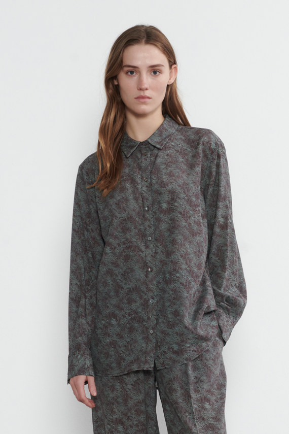 Milard skjorten er en klassisk silkeskjorte med en let oversized pasform, der tilføjer et moderne touch til enhver garderobe. Den klassiske krave sikrer et tidløst look, perfekt til både formelle og afslappede lejligheder.