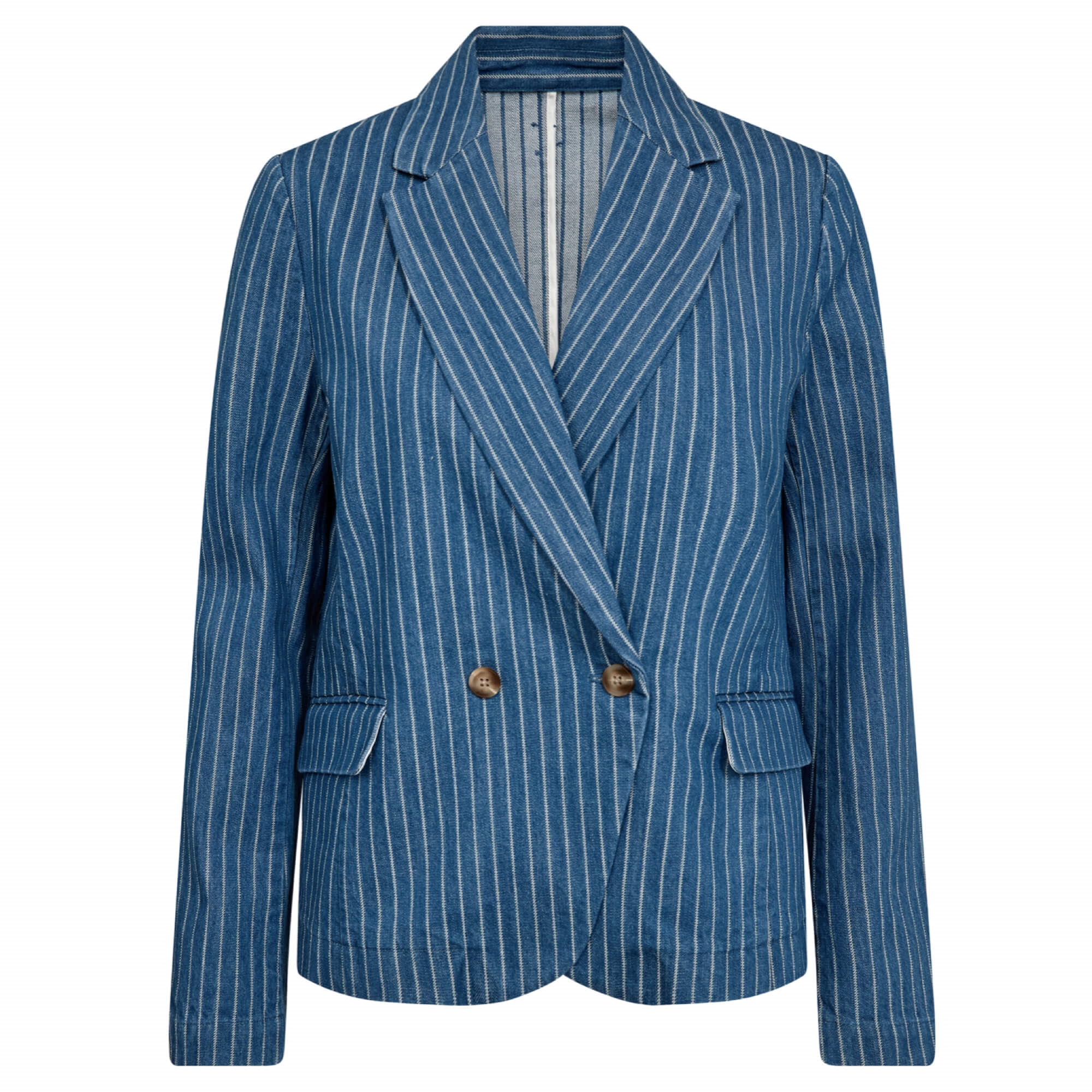 Den fine Beline Virto Blazer i den flotte Mid Blue som er en flot blå farve med striber. Den perfekte forårs blazer til enhver lejlighed. Style med et par lyse jeans med hvide sneakers.