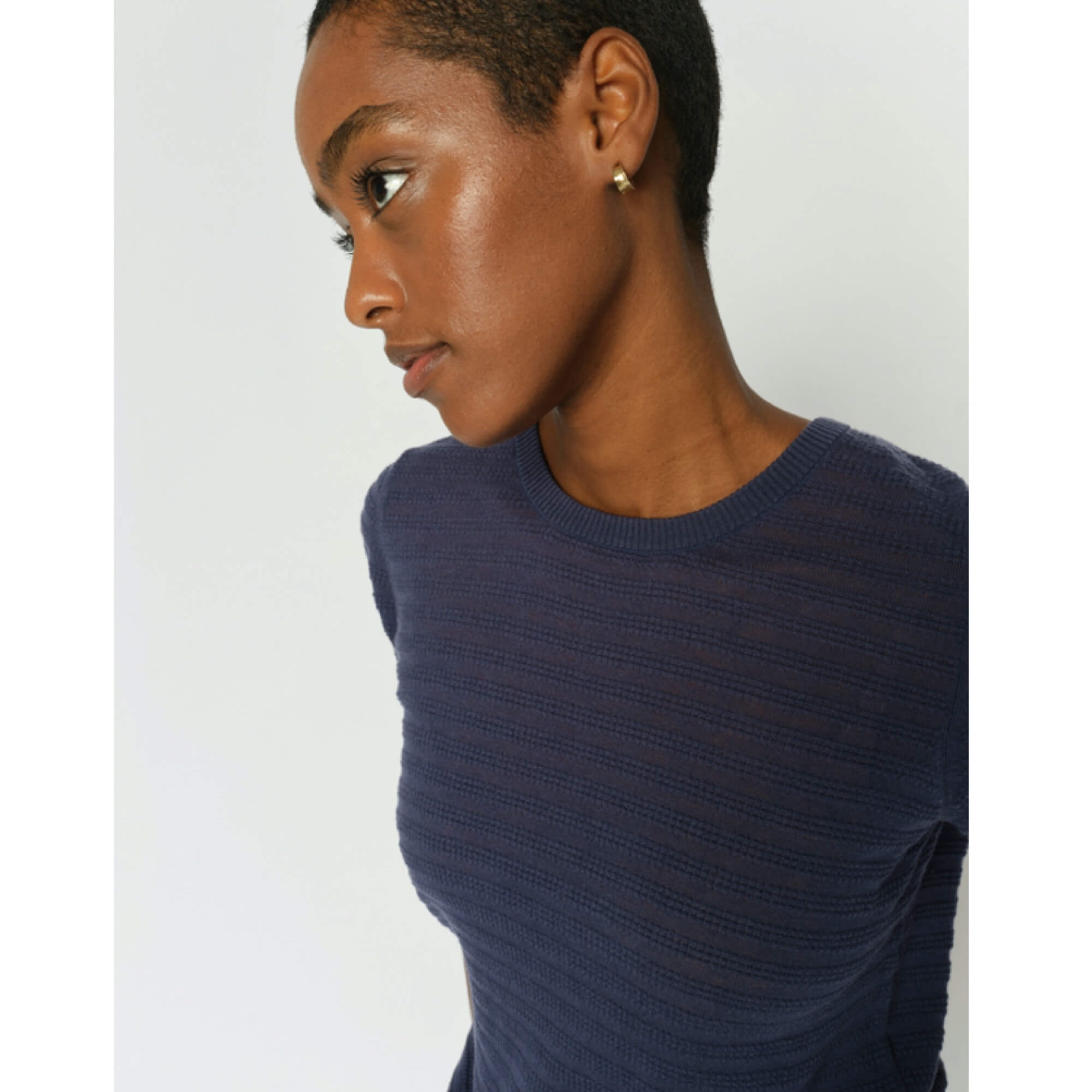 Denne fine kortærmede Bouch Dotty strik er en tidløs og let strik, designet med klassisk rund hals. Den bløde struktur og det rene design gør den til en alsidig garderobefavorit - Perfekt under en blazer eller alene med jeans eller skræddersyede bukser.