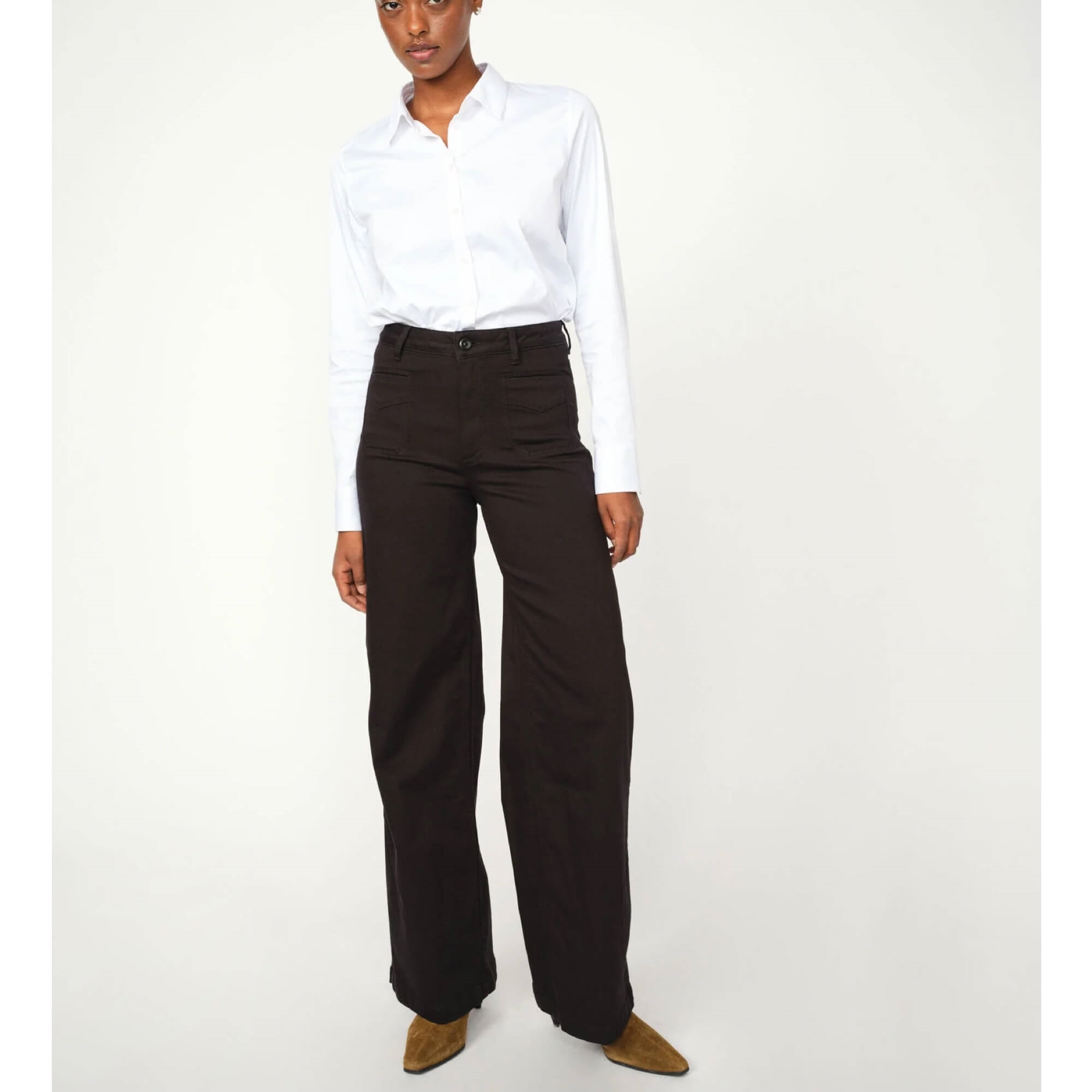 Smukke jeans fra Mos Mosh i en flared pasform, designet med en flatterende høj talje og fremstillet i en luksuriøs blanding af viskose, bomuld og lyocell for en ekstra blød finish. En klassisk og tidløs 5-lomme-model fra Mos Mosh med markante kontrastsyninger mod den mørke denim for et enkelt, men sofistikeret udtryk. Passer perfekt til en smart go-to T-shirt og en oversize blazer.