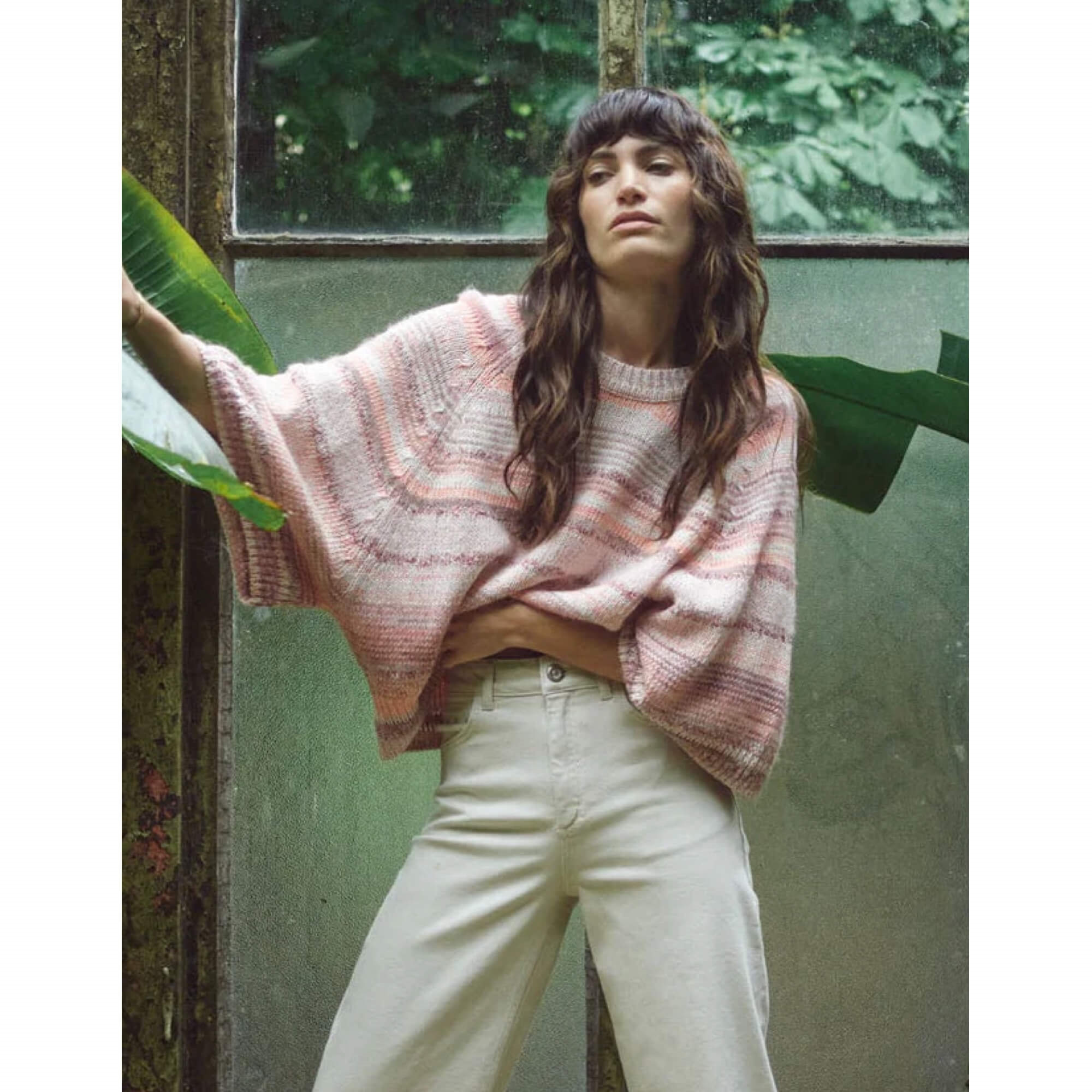 Den smukke Edele er en kortærmet striktrøje med en afslappet, oversize silhuet. Designet med rund hals, 3/4-ærmer og et smukt meleret mønster, der tilfører varme og tekstur. Perfekt til lag-på-lag – style den med jeans eller en let nederdel for et ubesværet, sofistikeret look.