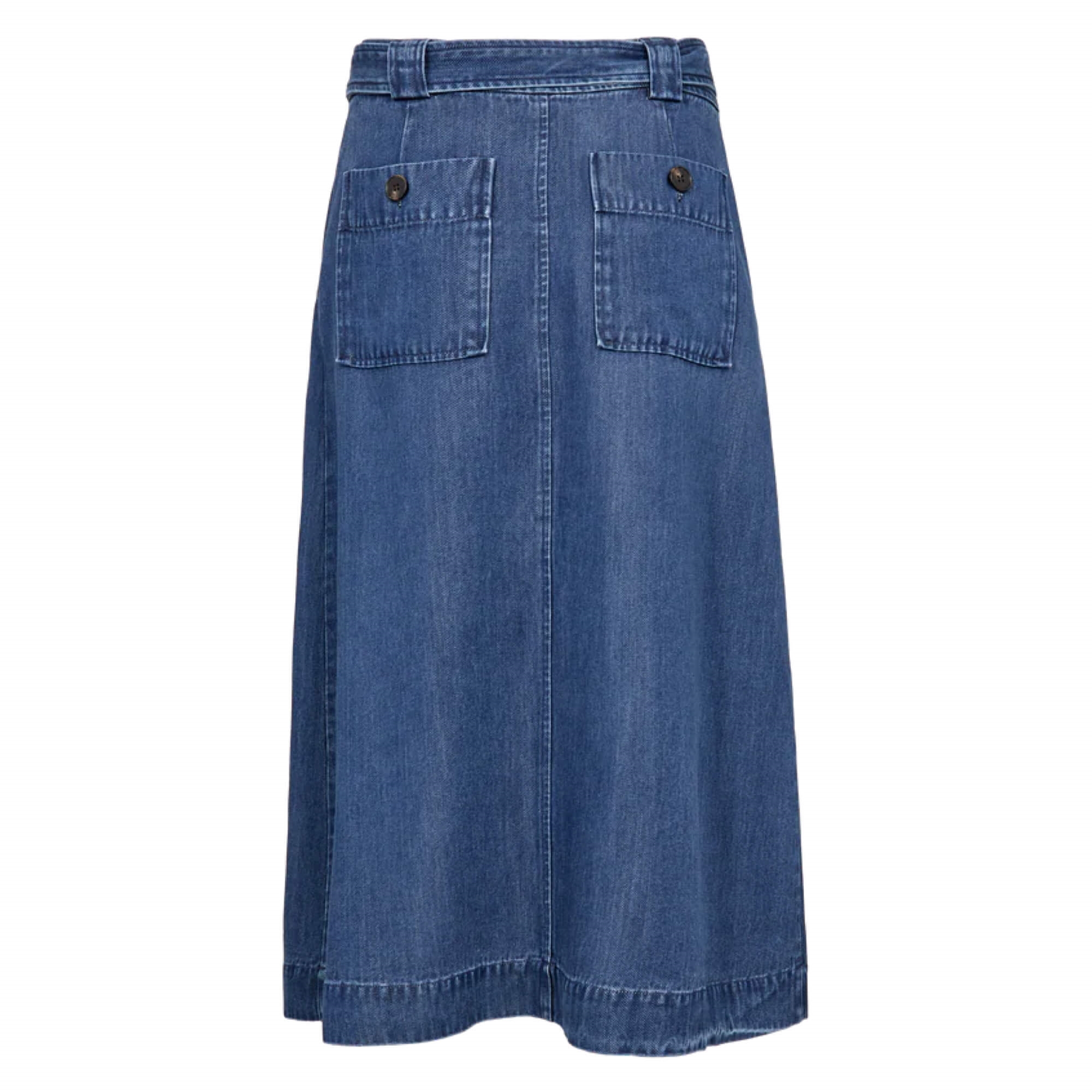 Tidløs nederdel med et moderne twist og en flatterende, feminin silhuet. Designet i et blødt, let faldende materiale med A-form og mellemlang længde. Det matchende bælte fremhæver taljen, mens knaplukningen foran giver et afslappet udtryk. Perfekt til et ubesværet chikt look – Style med skjorte eller T-shirt.