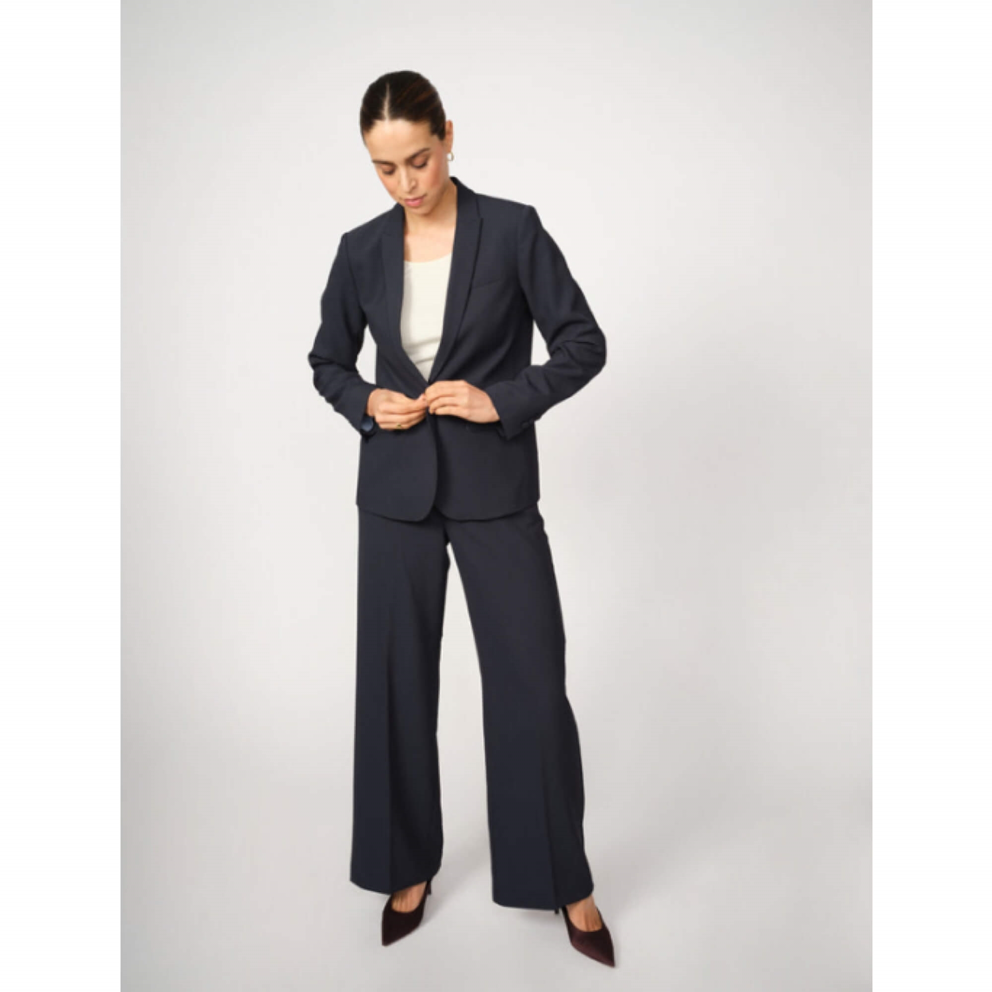 Mos Mosh Leya Miley Bukser i navy er et par klassiske og elegante habitbukser, der har et tidløst design. De er designet med en mellemhøj til høj talje og en lige pasform, som giver et stilfuldt og sofistikeret udtryk. De fine bukser har pressefolde samt en skjult lynlåslukning, som giver dem et rent og klassisk look. Perfekt til både kontoret, festlige anledninger og mere afslappede lejligheder.