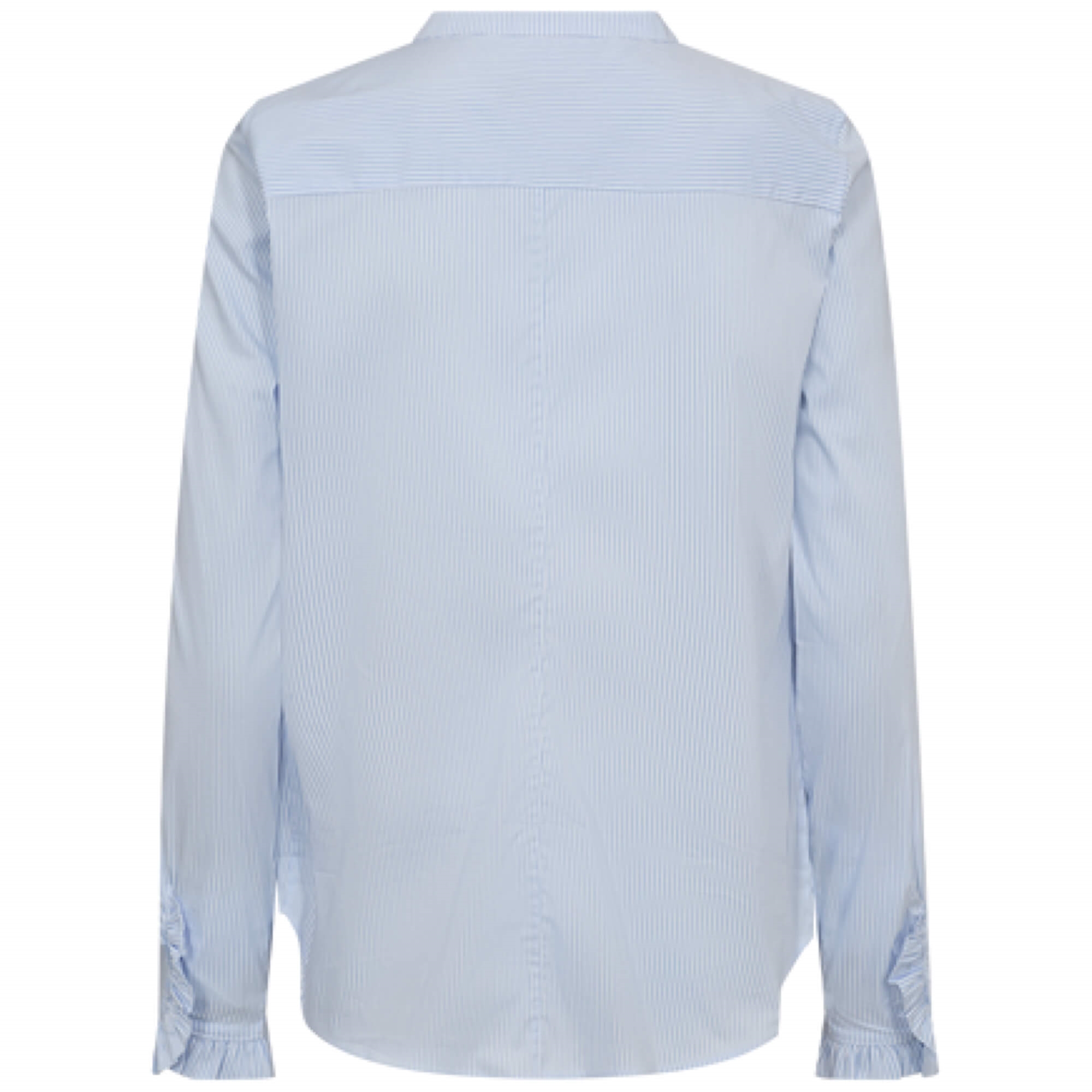 Mattie Stribe er en klassisk stribet skjorte i regular pasform med båndkrave og knaplukning. De lange ærmer har fine flæsedetaljer ved manchetterne, som giver et let feminint udtryk. En alsidig skjorte, der nemt kan styles med både jeans og skræddersyede bukser.