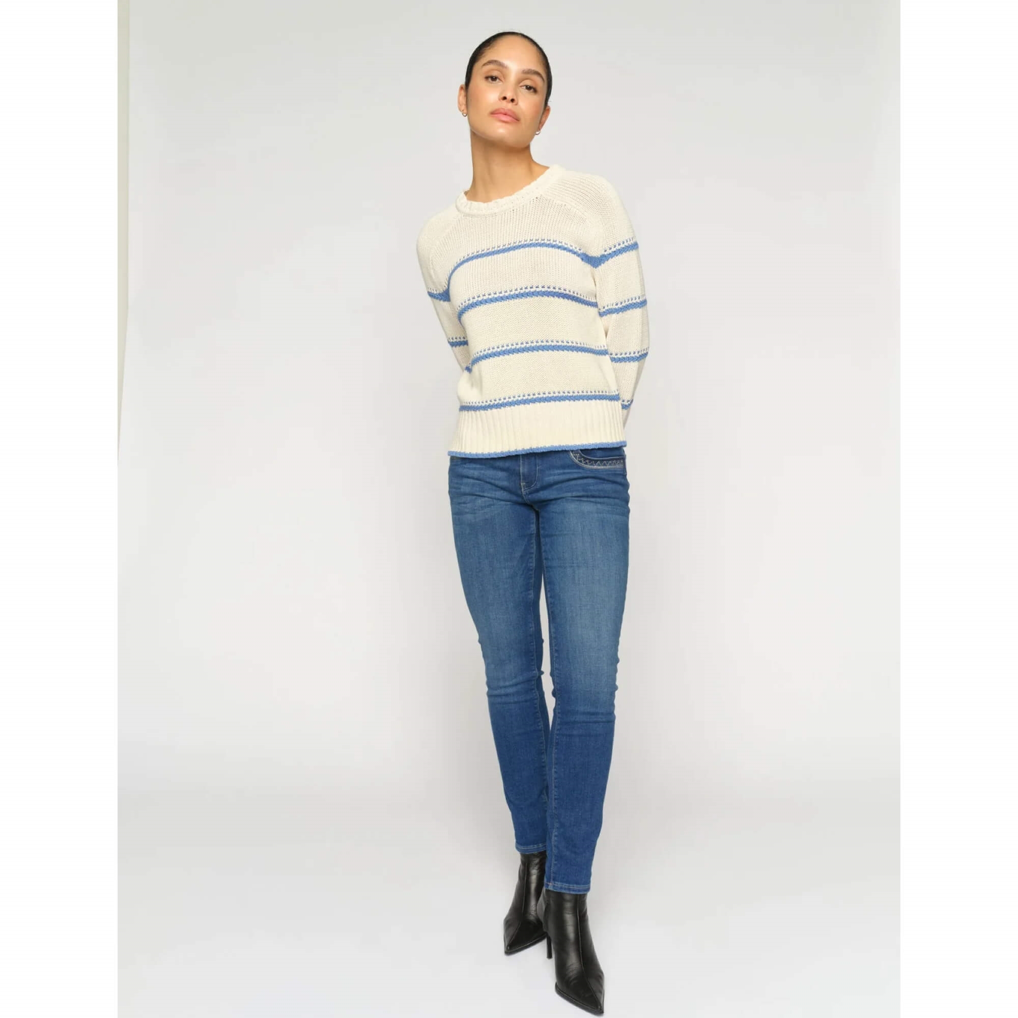 De skønne MMNaomi Jenny jeans er i en flatterende slim-fit pasform med mellemhøj talje og opsmøgede kanter. De er designet med fine signaturdetaljer ved forlommerne, som giver et diskret strejf af glans. Et alsidigt par jeans, der nemt styles med alt fra en afslappet T-shirt til en klassisk blazer.