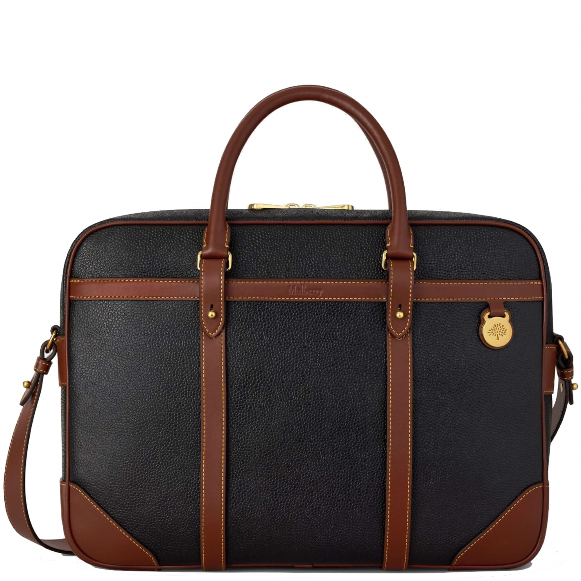 Mulberry Heritage Briefcase Black & Cognac Eco Scotchgrain