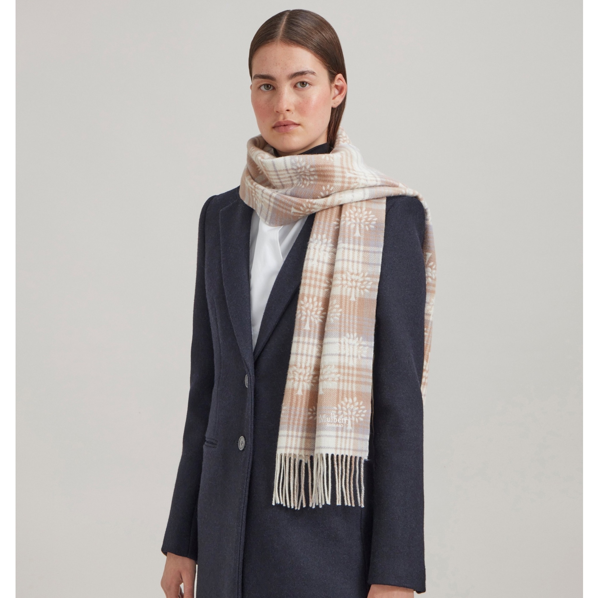 Mulberry Heritage Check & Tree Scarf Maple