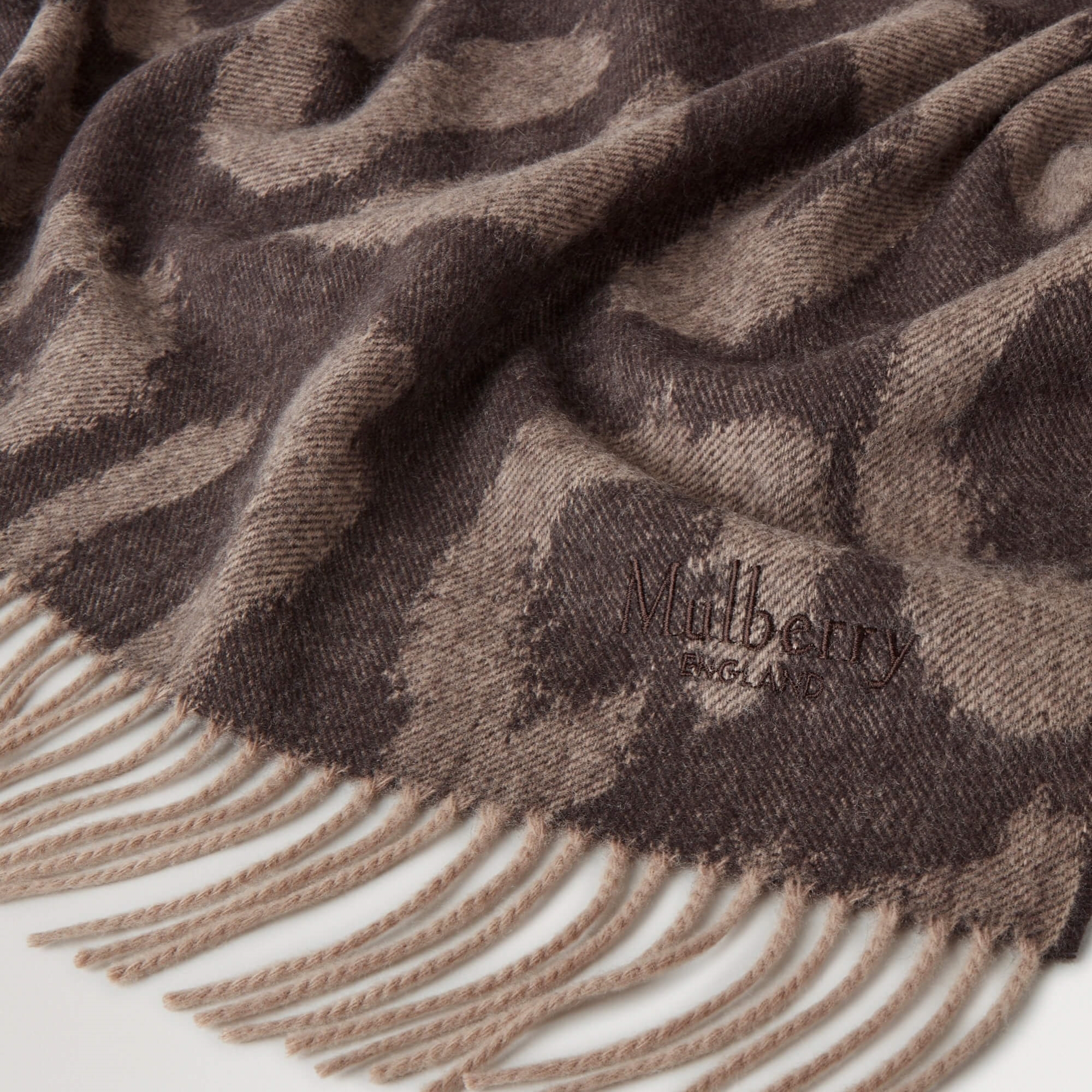 Leopard Merino Wool Scarf fra Mulberry – et elegant og iøjnefaldende tørklæde, der forener varme, komfort og tidløs stil.