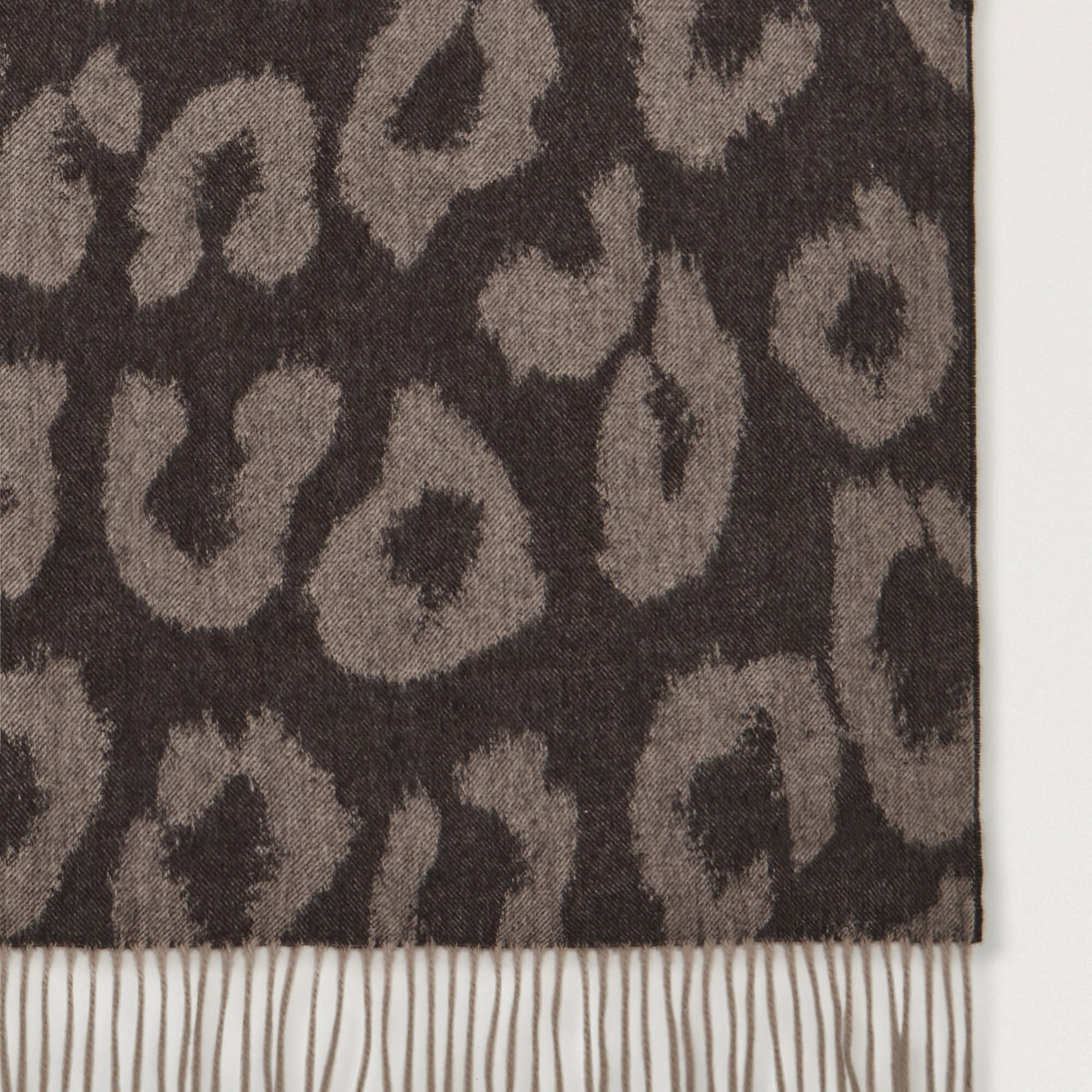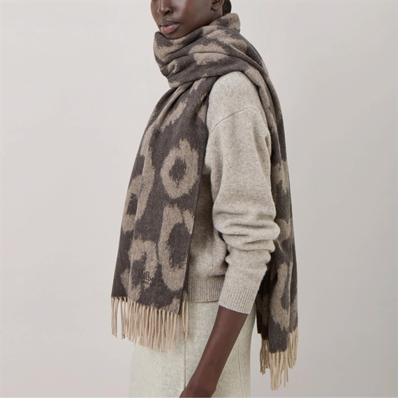 Fremstillet i blød, britisk merinould, har dette tørklæde en stor, omsluttende størrelse, der gør det perfekt til kolde dage. Det klassiske leopardmønster i nuancerne Ebony & Maple giver et raffineret, men legende udtryk, der løfter ethvert vinterlook.