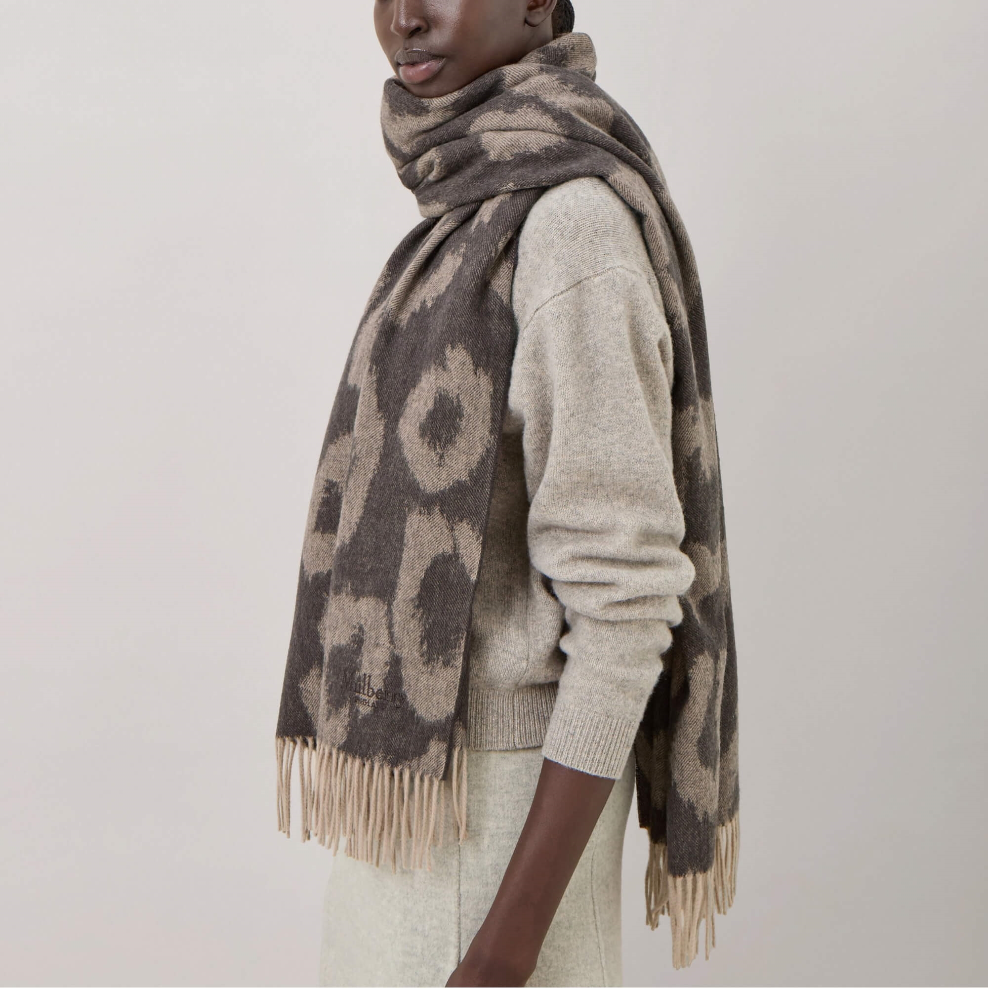 Mulberry Leopard Merino Wool Scarf Ebony & Maple Merino Wool